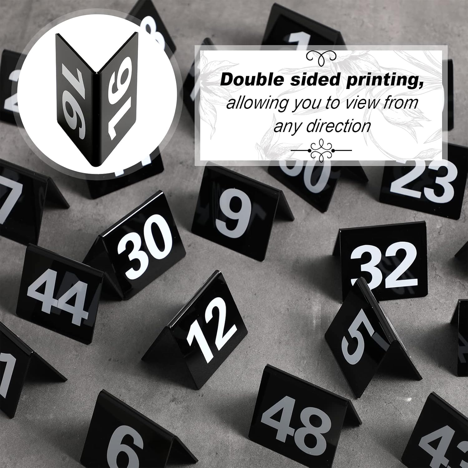 Tuanse Table Numbers 1-50 Acrylic Double Side Numbered Table Tents Restaurant Wedding Number Cards Signs for Banquets Party Wedding Reception(Black)
