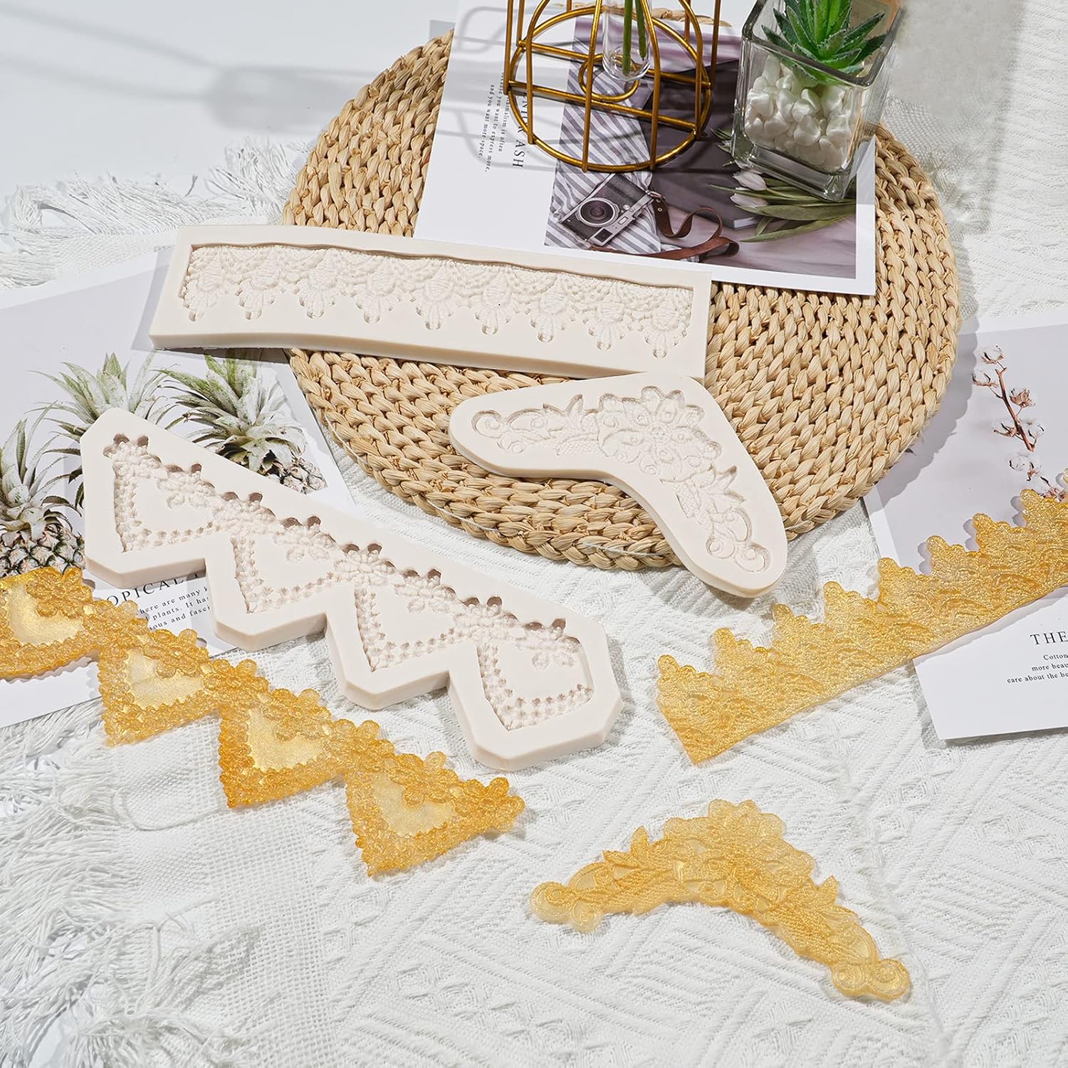 Lace Fondant Mold Set of 3, Edible Lace border Cake Decorating Imprint Mat Silicone Molds for Wedding, Valentine's Day, Chocolate, Cupcake, Cookies, Gum, Candy, Marzipan, Polymer Clay, Epoxy Crafts