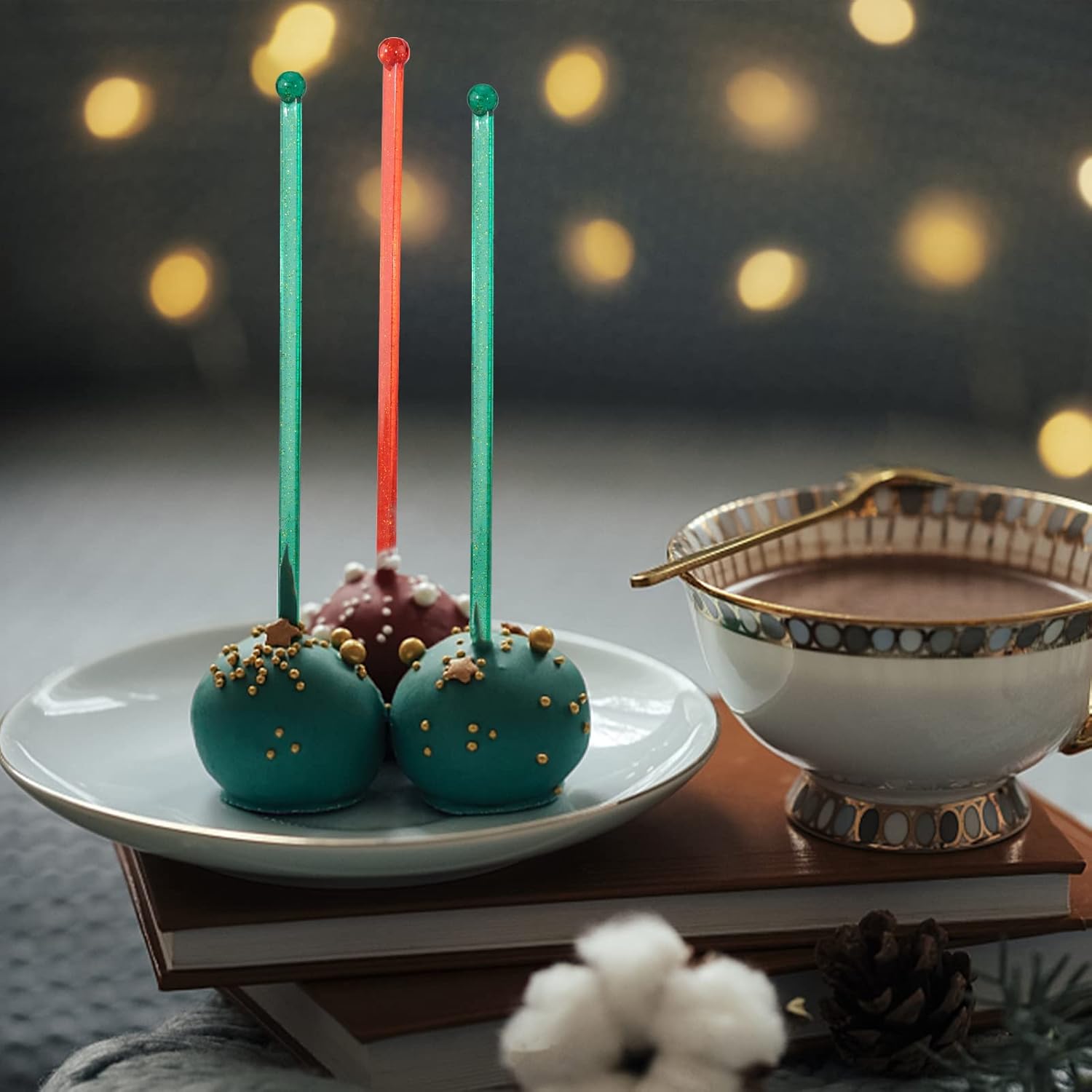 100-PCS Christmas Green and Red Glitter Plastic Swizzle Sticks, Crystal Cake Pops, Cocktail Coffee Drink Stirrers, Stir Sticks, 7.24 Inch