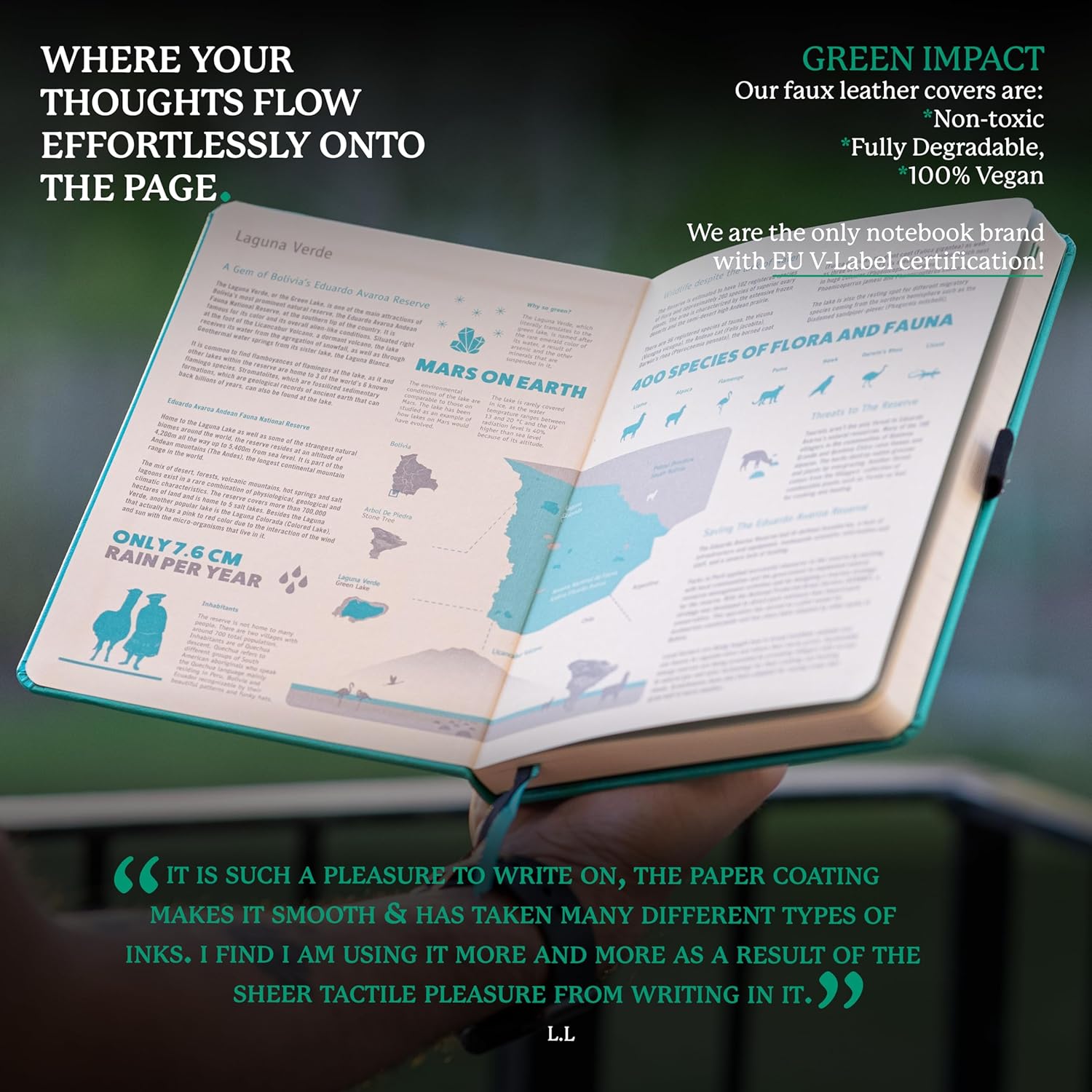 - THE ONLY VEGAN CERTIFIED NOTEBOOK: Stay eco-conscious with our 100% vegan certified notebook, crafted from recyclable materials and featuring purely FSC certified paper - perfect for anyone looking to make a positive impact on the environment while staying organized