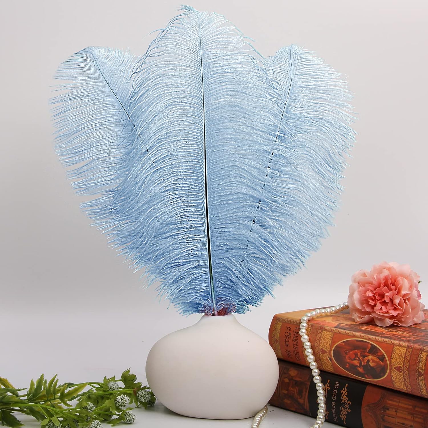 THARAHT Baby Blue Ostrich Feathers 12pcs Large Natural Bulk 12-14Inch 30cm-35cm for Wedding Party Centerpieces Easter Gatsbi and Home Decoration Feathers
