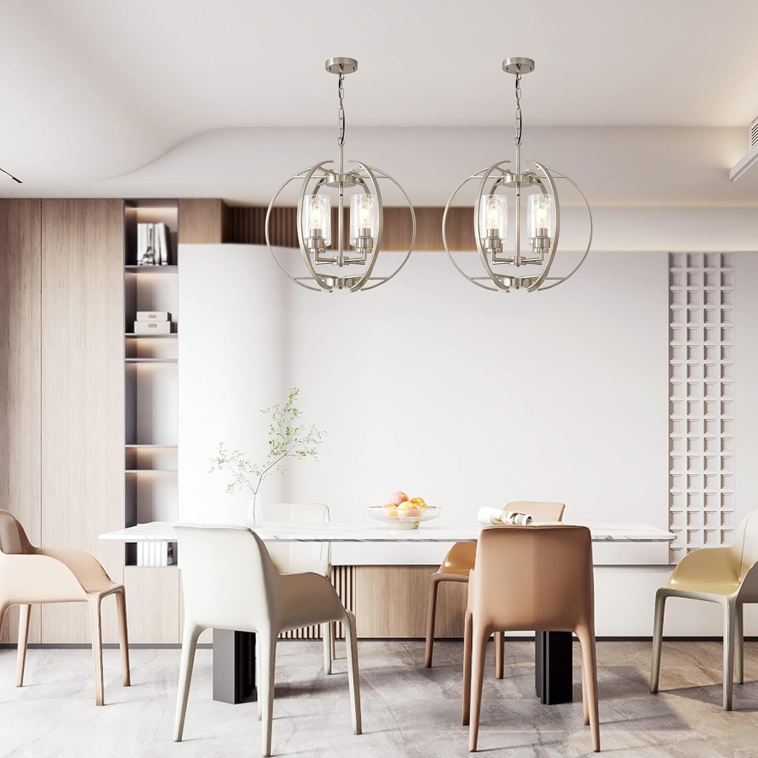 Large Lantern Globe Brushed Nickel Chandelier Lighting, Adjustable Hanging Ceiling Pendant 4 Light for Kitchen, Dining Room, Living Room, Hallway, Bedroom