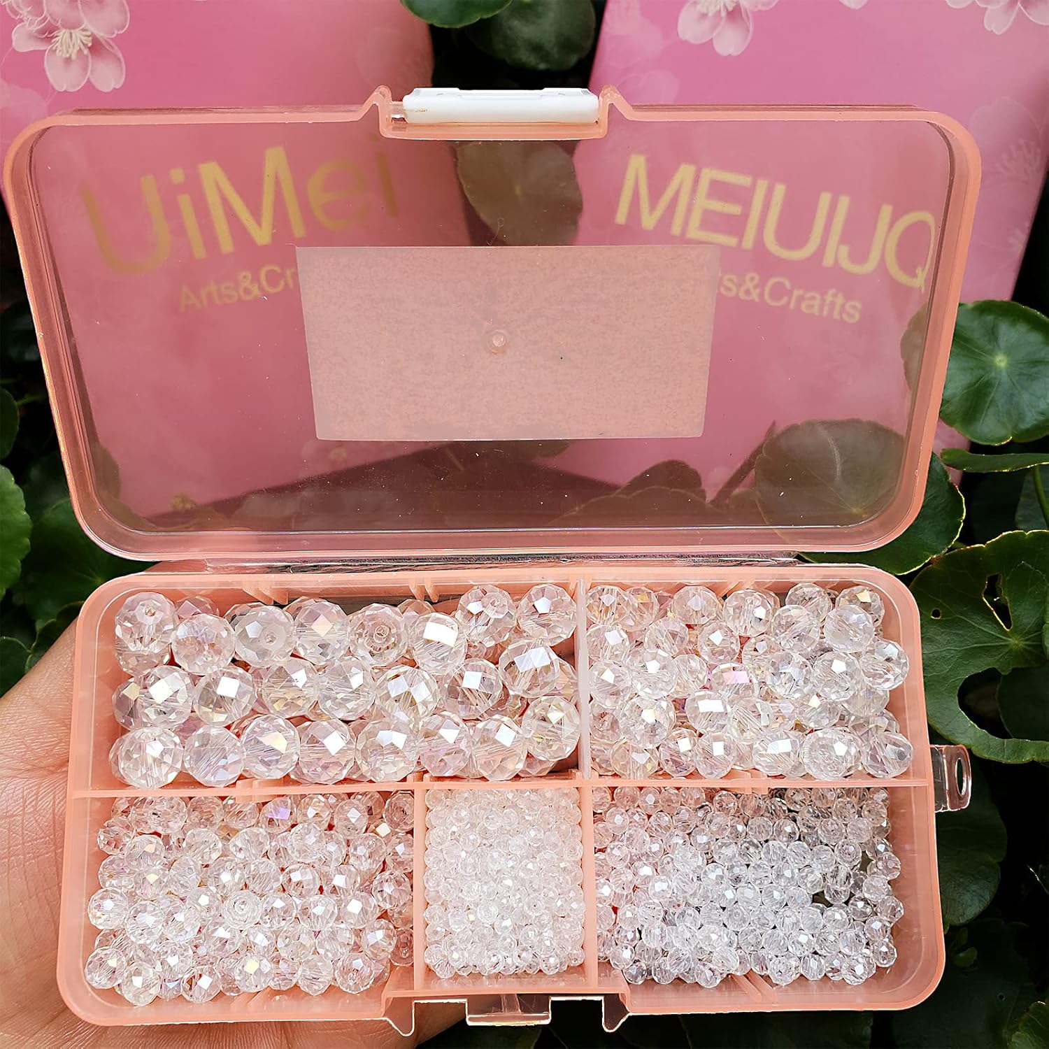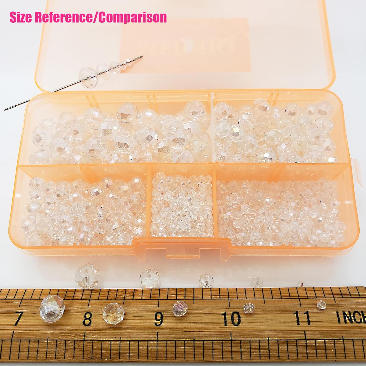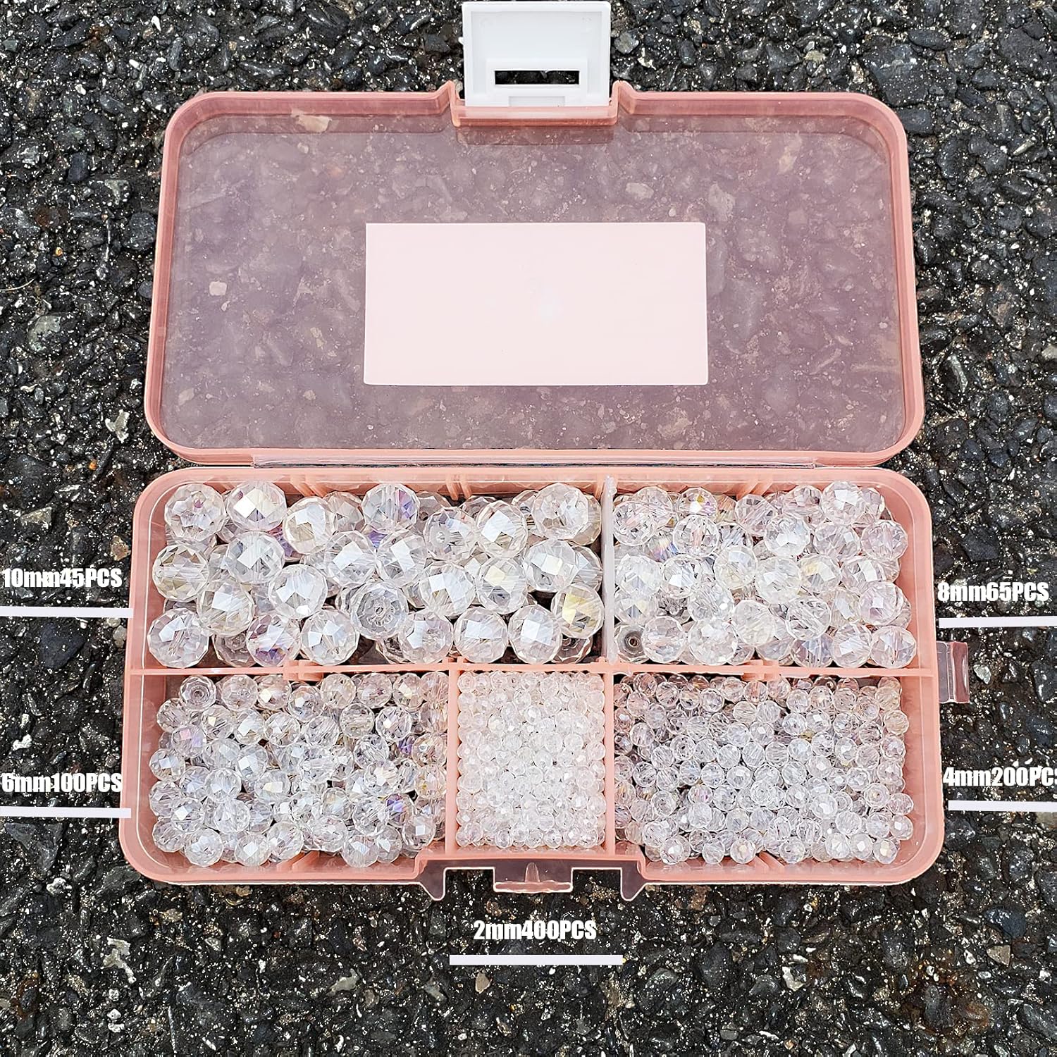 - 【PACKAGING and SIZE】Package includes 810Pcs white AB Rondelle crystal glass beads in 5 different sizes ,400pcs 2mm,200pcs 4mm,100pcs 6mm,65pcs 8mm and 45pcs 10mm faceted rondelle crystal glass beads.Sufficient quantity and various sizes to meet your various needs, you can combine them together to create delicate handicrafts according to your own preference.In addition, we provide you with some stretchy cord and add an organza bag.Let your family and friends enjoy DIY happy time together.