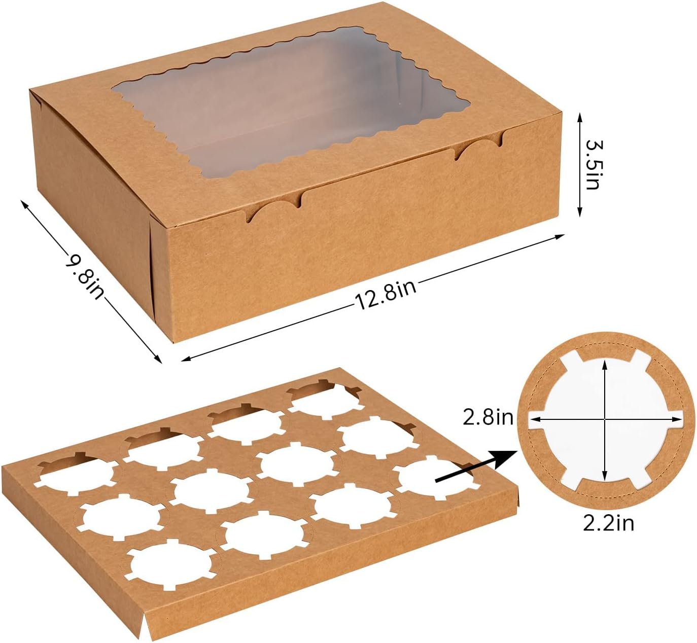 - Perfect Size: Our convenient boxes are generously sized that measures 12.8 x 10 x 3.5 inches, and insert measures 2.57" in diameter. Inserts are deep and wide enough to hold small or large cupcakes.