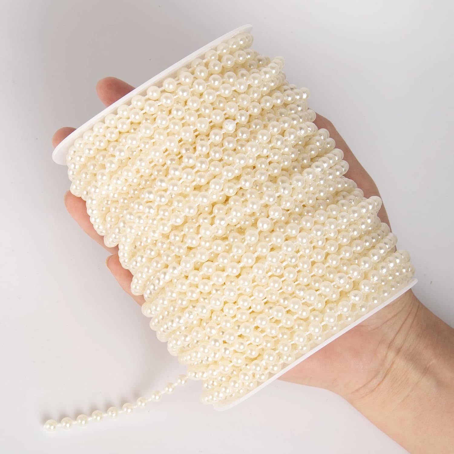 [118Feet] Pearl Beads Garland, 5MM 39Yards Faux Pearl Beads String Roll Bulk for DIY Craft Wedding Party Christmas Tree Decoration