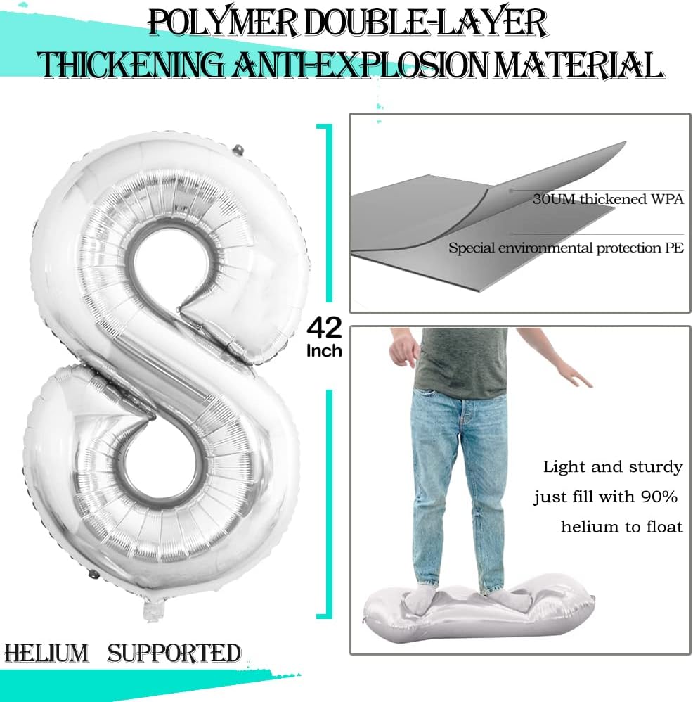 GOER Number 28 Balloons for 28th Birthday Party Decorations,42 Inch Jumbo Foil Helium 82 Balloons for 82nd Birthday Party Decoration (Silver)