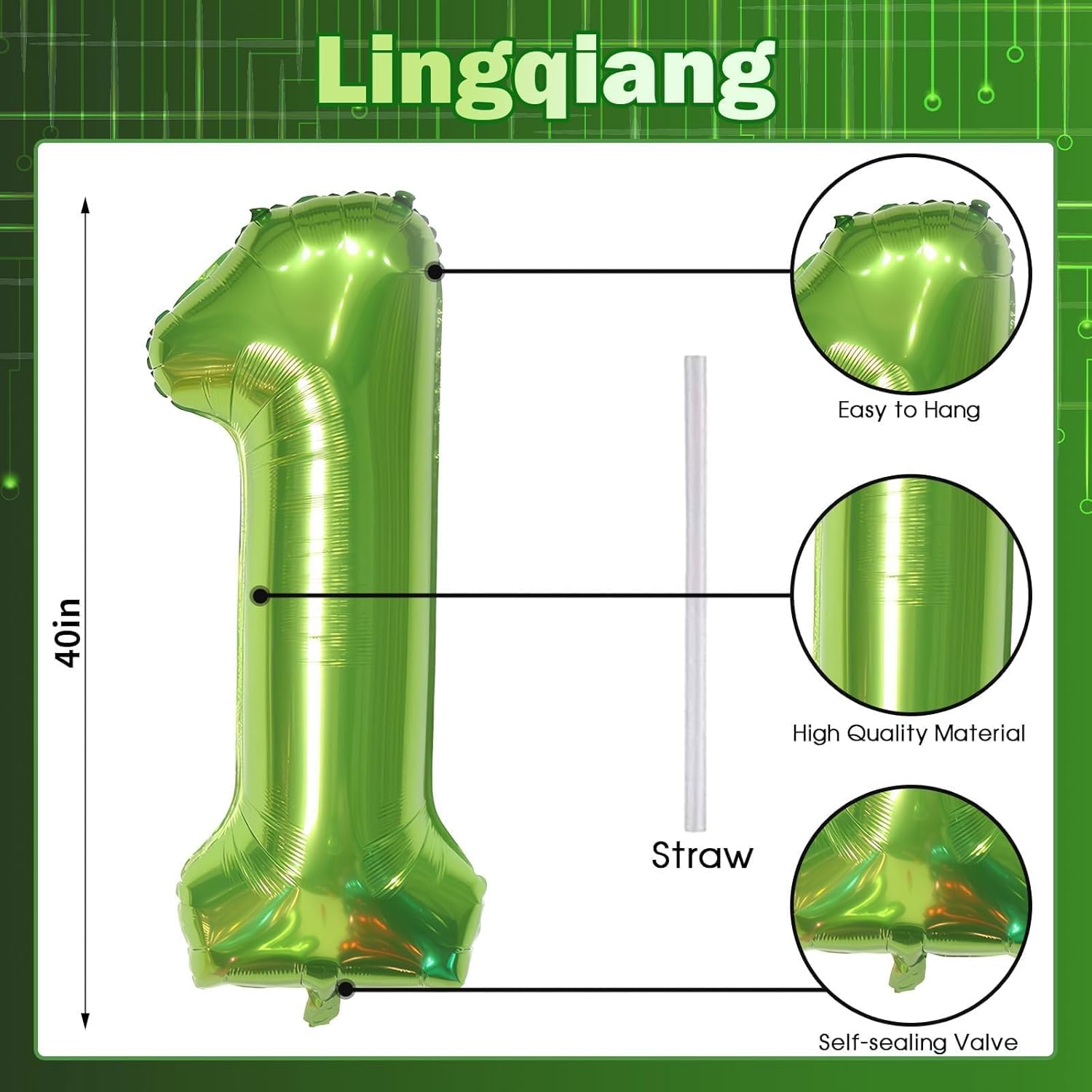 - 🎉 Green Number 1 Balloon 🎉 - You will get 1pc 40 inch mylar foil number 1 balloon and 1pc straw. Perfect for 1st 10th 12th 13th 15th 16th 17th 18th 21st birthday or anniversary party decorations supplies.