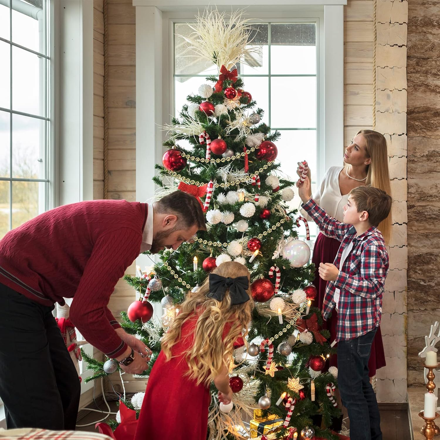 - Faux Pearl Beads Garland: Faux pearl rolls can be cut to the desired length. You can easily adjust the pearl strand length and cut to any length you need for your ornaments or DIY crafts. Each pearl is melted on a sturdy nylon cord, so it won't scatter, and it's easy to handle