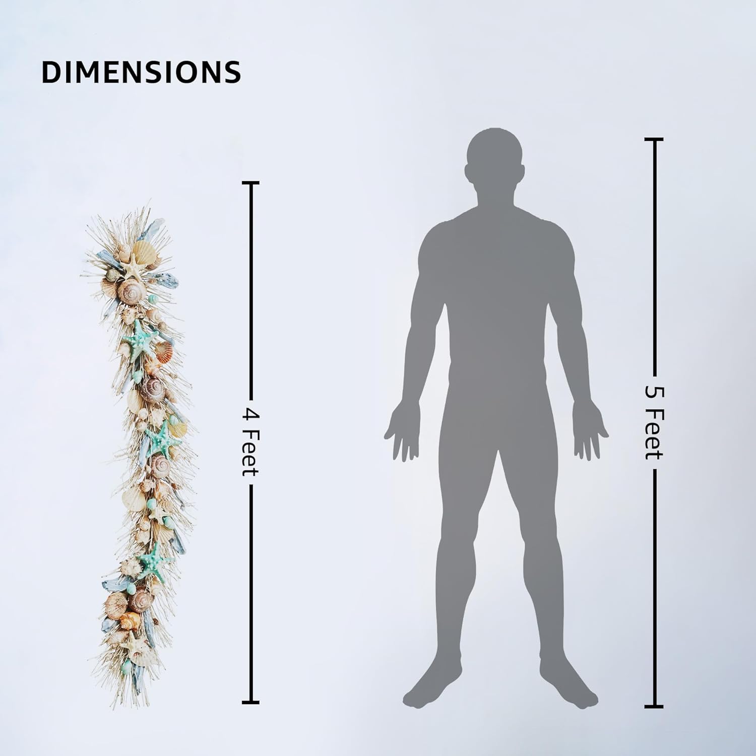 - [ Premium Beachside Elegance: ] Elevate your summer decor with this Handcrafted 4-ft Shell Coastal Summer Garland. Its intricate design and beach-inspired elements exude a sense of luxury, creating a captivating ambiance in any space.