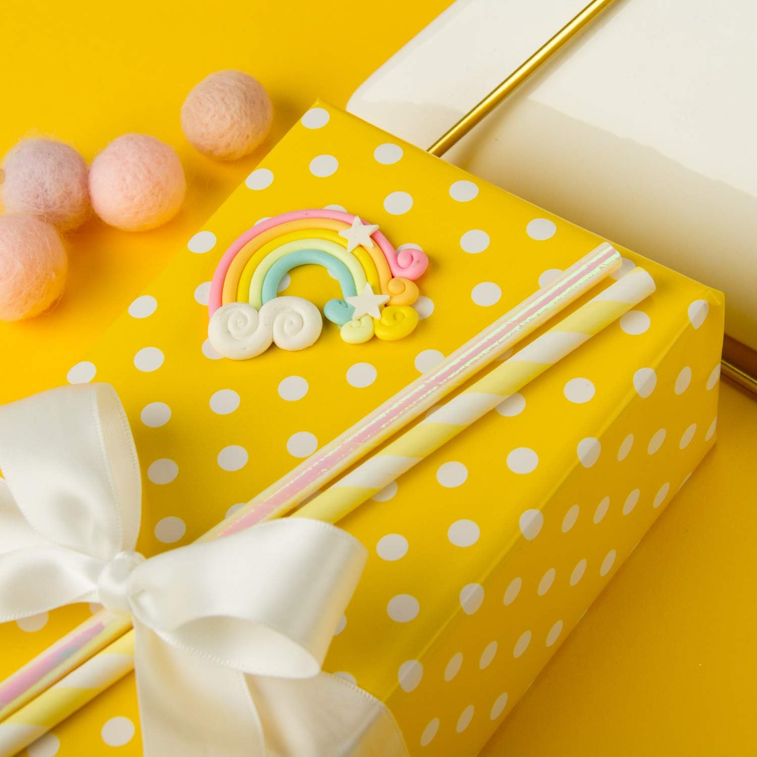 - REVERSIBLE: A solid yellow side and a yellow/white polka dot side. Two different classic designs make beautiful and varied gift presentations easy.