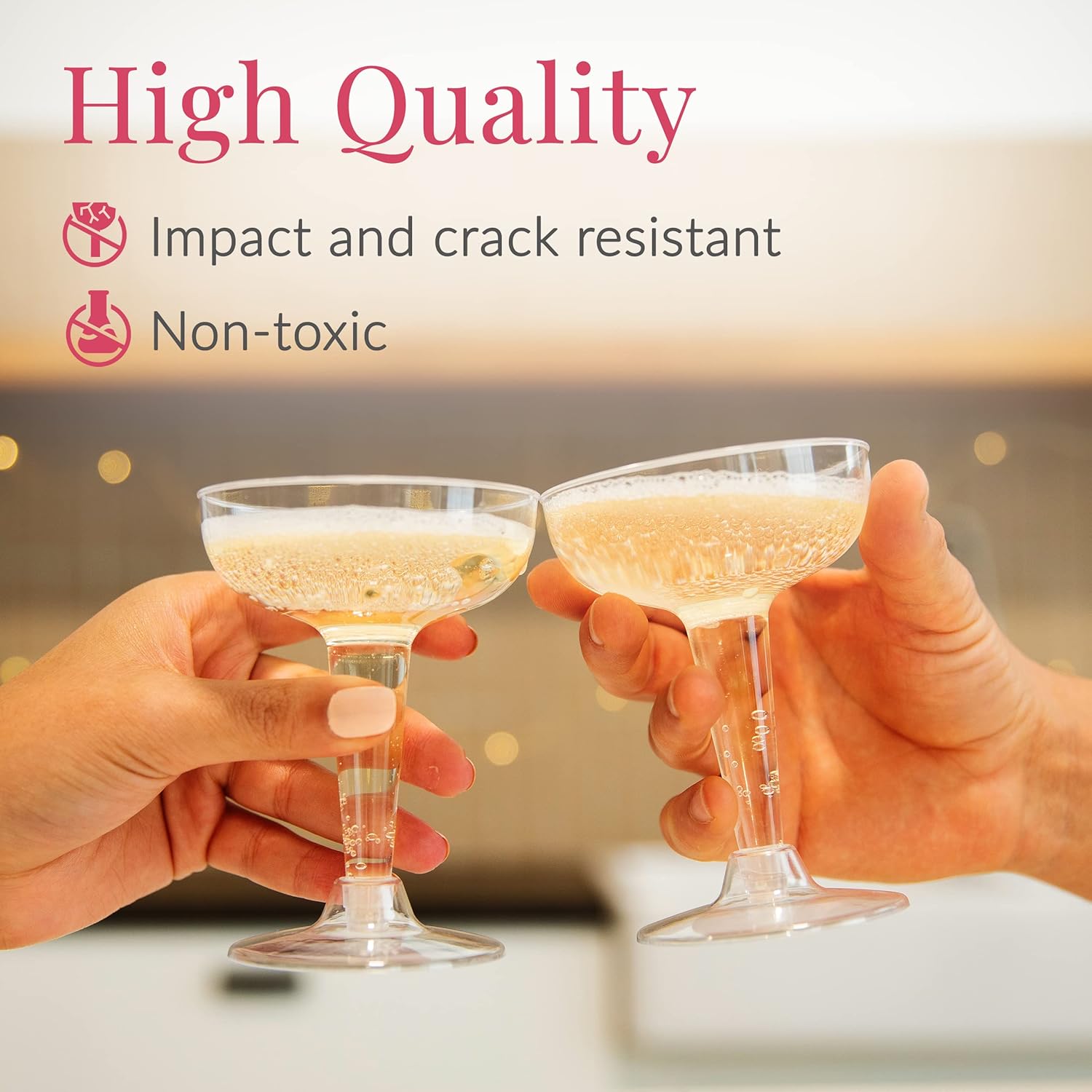 - COST-EFFICIENT – Crafted from high-quality plastic at an affordable price, these stylish glasses add elegance to any event—ideal for parties, champagne towers, weddings, or upscale gatherings.