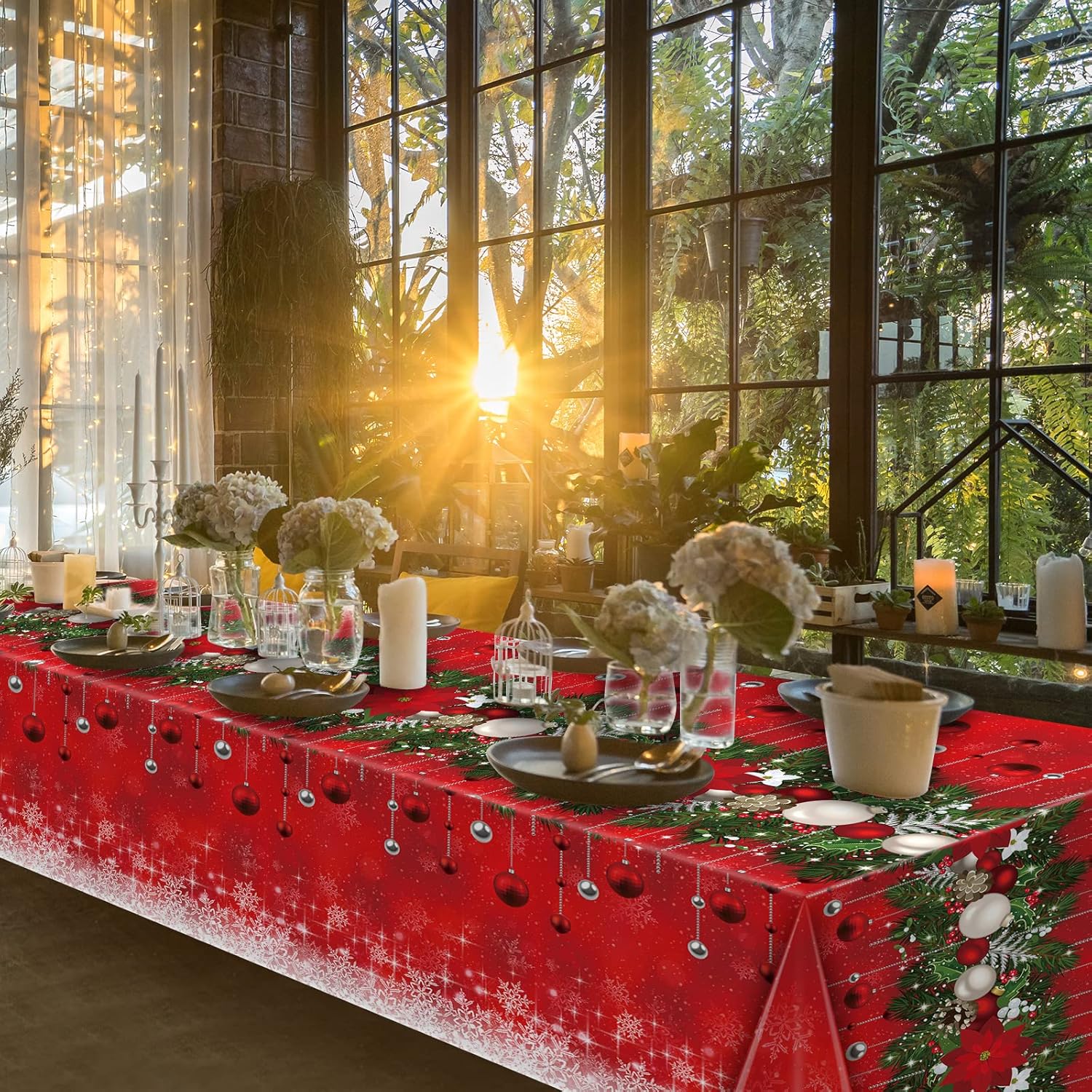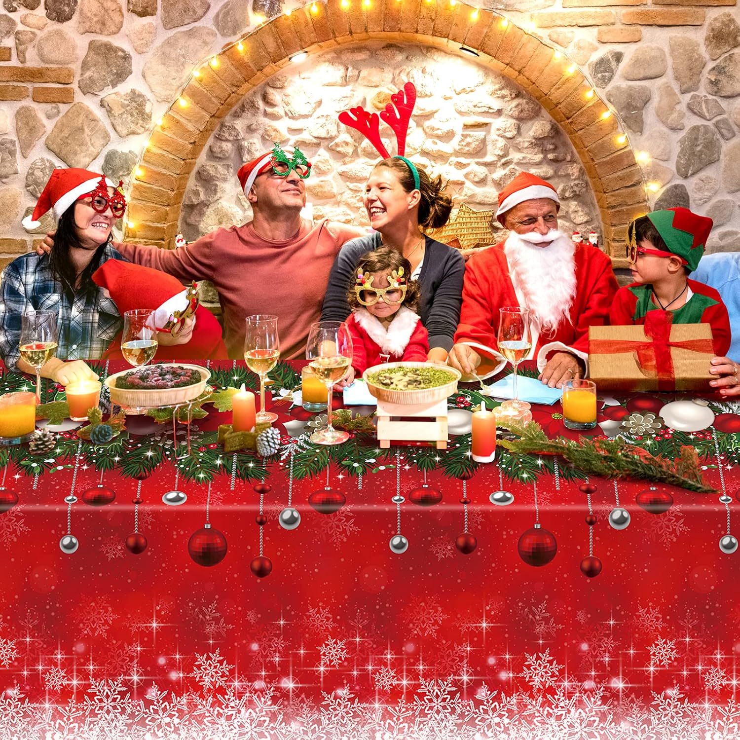 - Large size: the rectangle Xmas tablecloth measures 54 x 108 inches/137 x 274cm,which fits for most rectangle 8-10 seats tables, it is large enough to decorate your Christmas themed party, is an ideal addition to any Christmas table