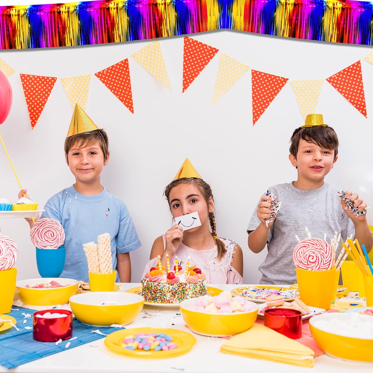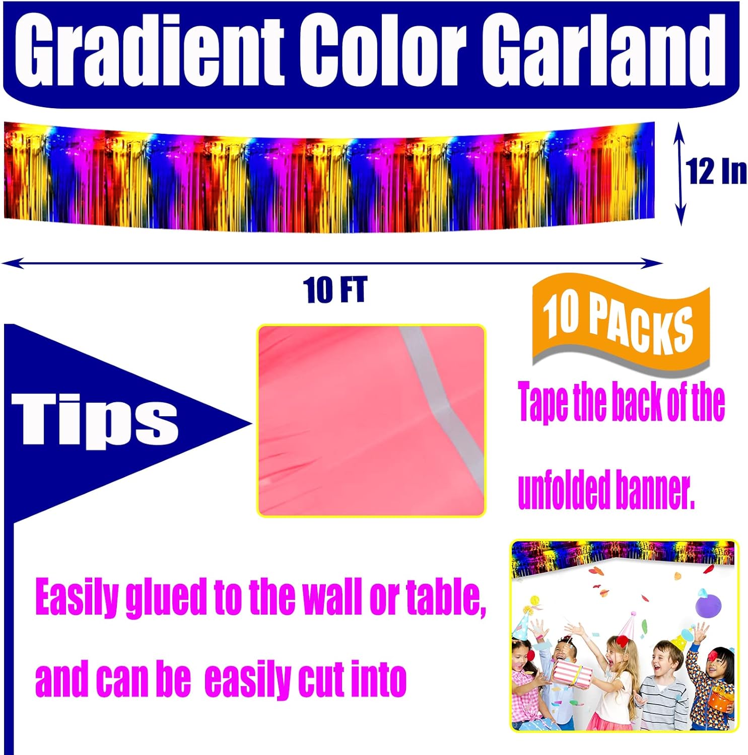 10 Pack 10 Feet Foil Fringe Garland Metallic Tinsel Streamers Banner Wall Hanging Curtain Backdrop for Parade Floats, Bachelorette, Wedding, Birthday, Halloween, Christmas Party Decorations(Rainbow)