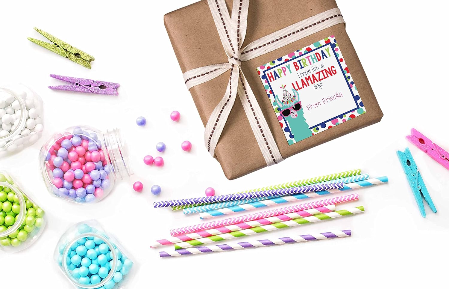 Custom & Personalized Llamazing Llama Happy Birthday Gift Tag Sticker Labels, 24 2.5" Square Stickers by Amanda Creation