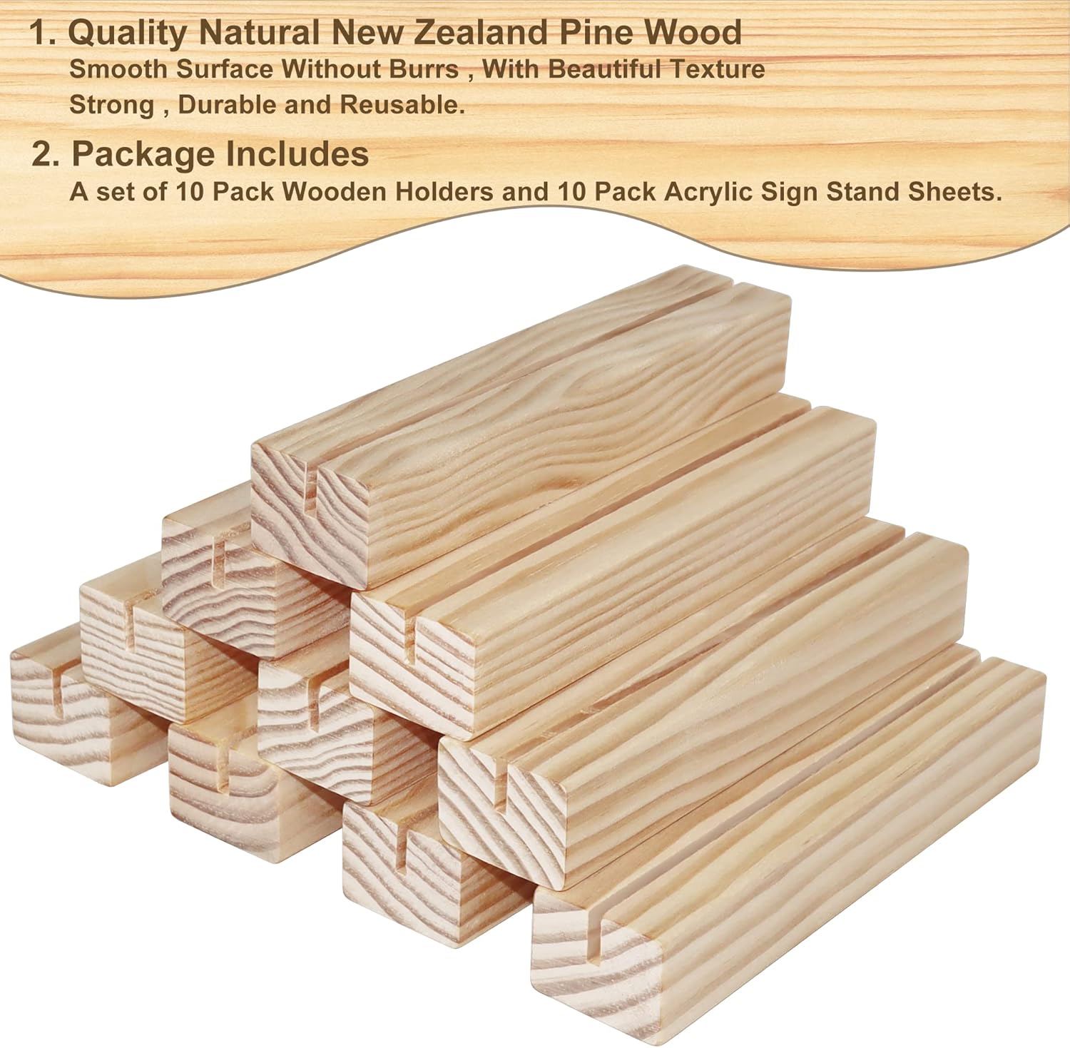 - Quality Material Adopted - Our blank acrylic signs are made of high quality 1/8” thick clear acrylic. Table number stands are made of natural pine wood material. The acrylic blanks with stand are precisely cut with clean lines and polished with smooth edges. Durable for long time use. It won't easily leave scratches on the surface.