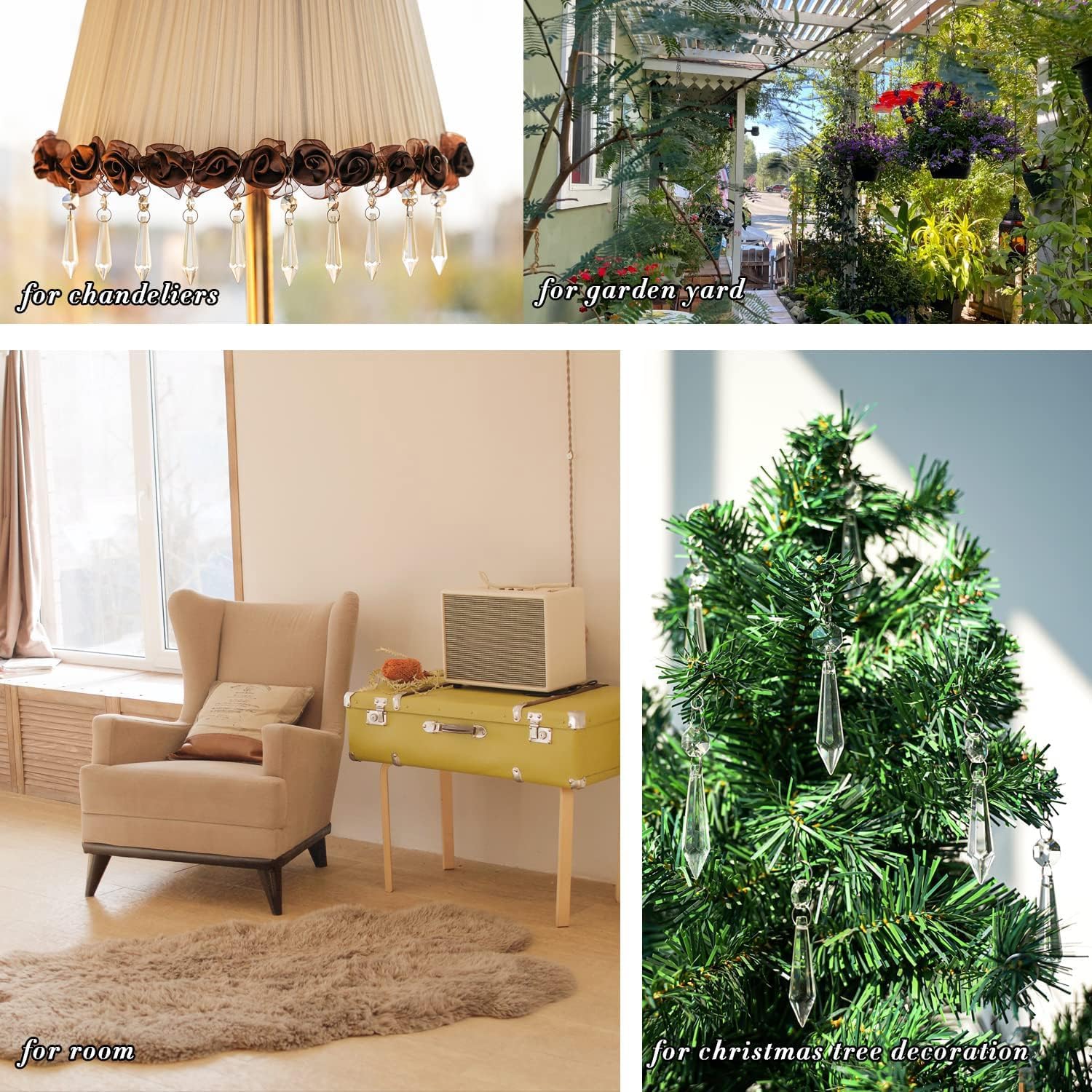 - where the sunlight could hit it. Multi function crystal suncatcher: For home/office/garden window; Feng Shui crystals; Chandelier crystal parts; Wedding/party decoration; Christmas tree decor, rear view mirror charm or any crystal projects
