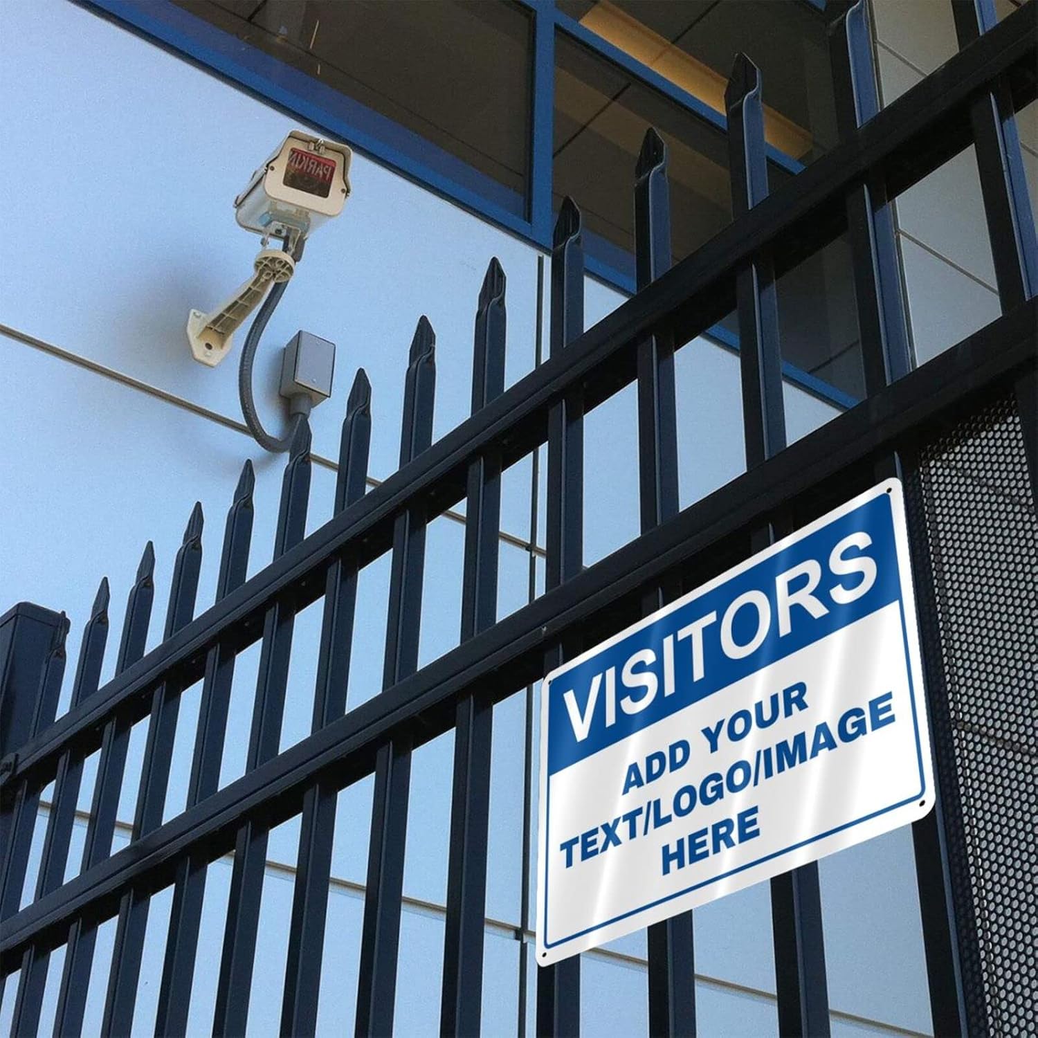 Custom Signs Outdoor Metal - 12 x 8 Customized Personalized Aluminum Signs for Office, Home, Business, Decor, Custom Rust-Proof Sign (VISITORS)