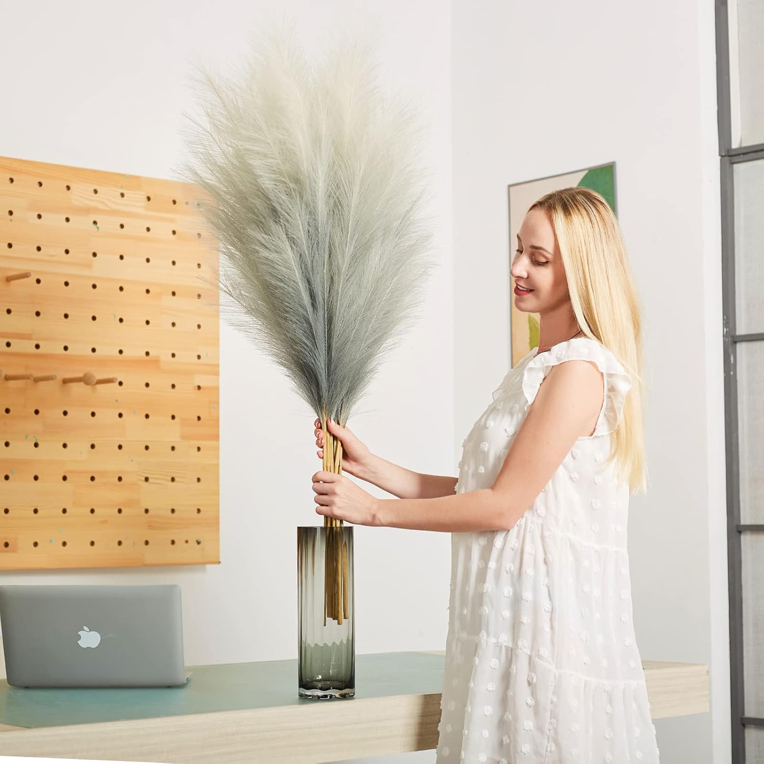 - Minimalistic and Elegant Decor Piece: Really nice faux pampas grass for home decor, display in your hallway, kitchen, living room, bedroom, front room, dining room or entry way... any space.They are also a great addition to wedding, flower arrangements, lifestyle photography, party, bohemian decorate and etc