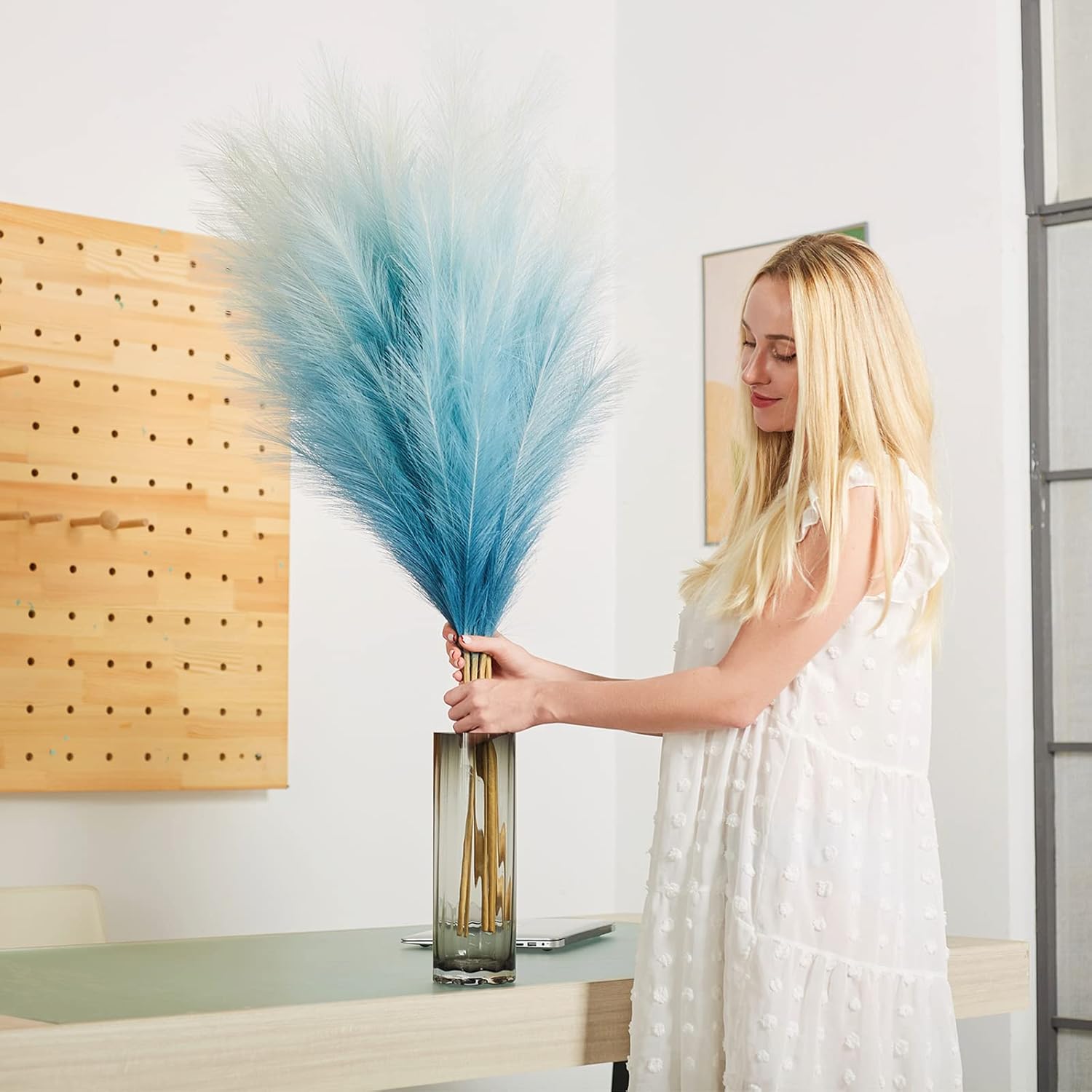 - Warm Color& Good Texture Pompous Grass: It comes with 6 long stems of extra fluffy and tall faux pampas grass They're nice and full and have a really impressive appearance, nicely with a variety of decorations! Packaging with box to avoid crushing during transit, hold their shape very well
