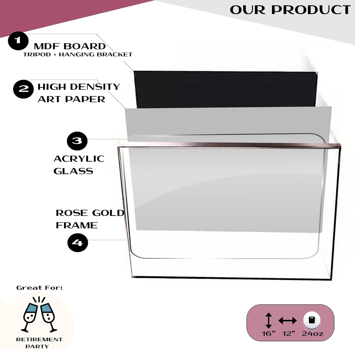- Perfect for Any Room: The framed rose gold retirement card can be displayed in any room of the retiree's home or office as cherished reminders of their hard work and accomplishments.