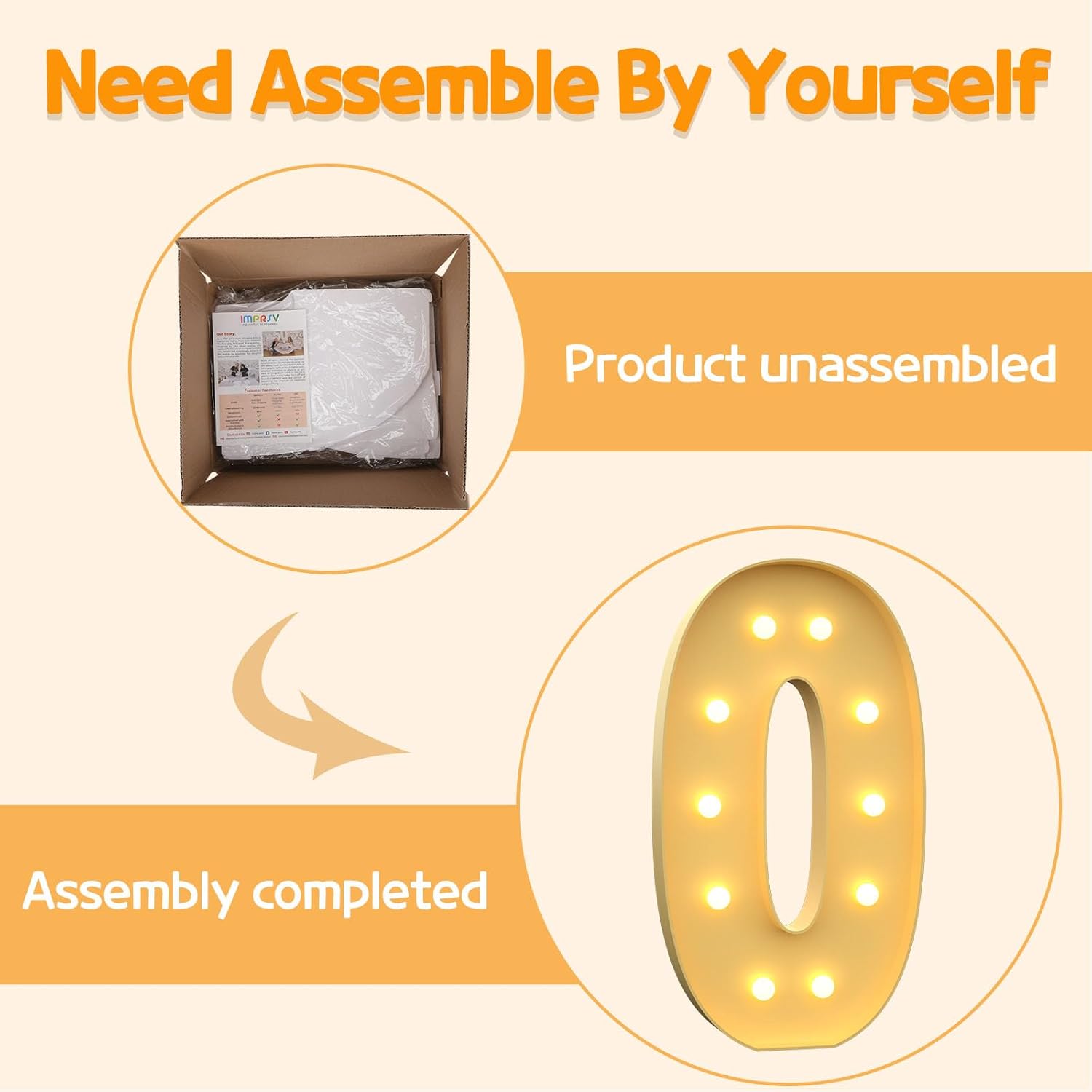 - Assembly Required: Our large marquee numbers is made from foam board and easy to assemble with our splicing mode. Just follow the numbered instructions to align and insert the bottom plate, and reinforce it with a hot glue gun. Then, you're done!
