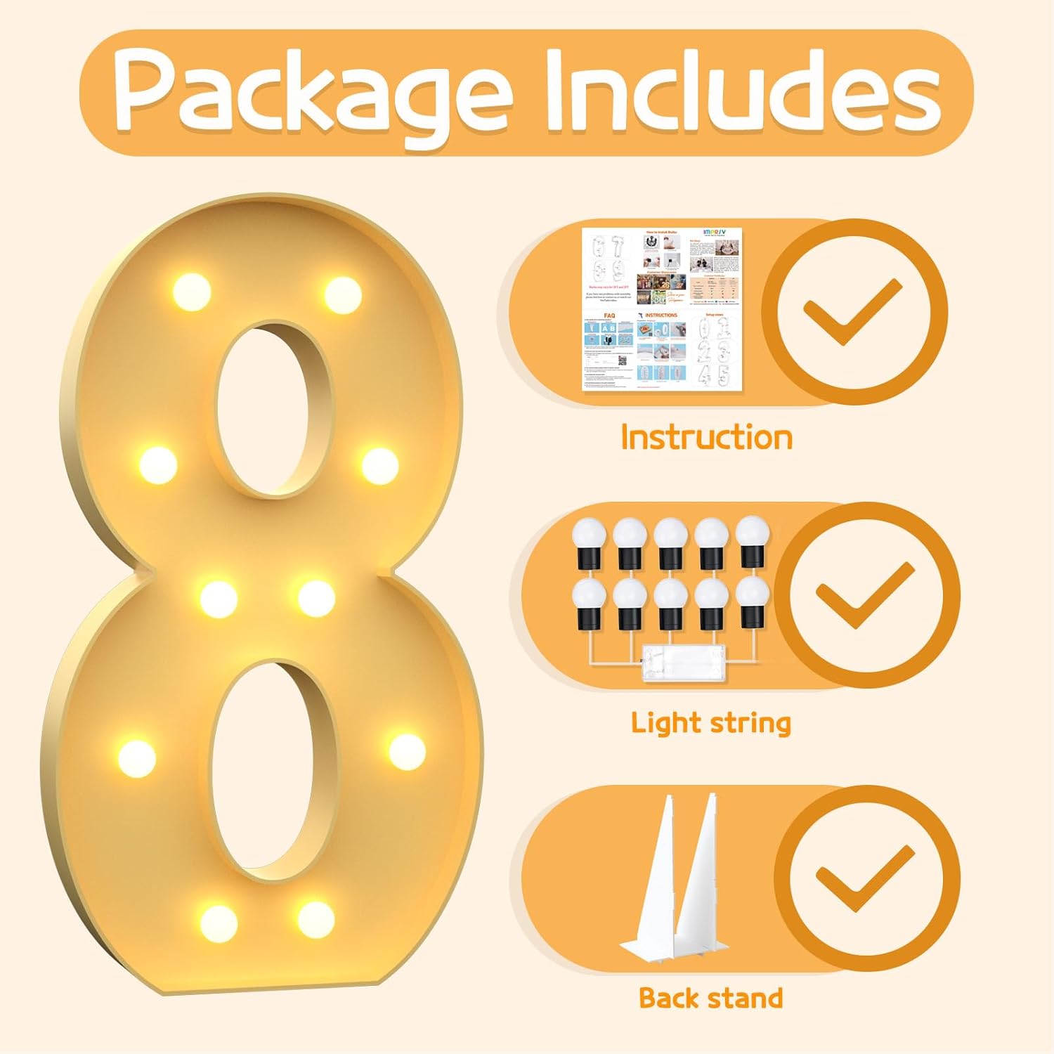 Marquee Numbers 4 Feet Tall Large Light Up Numbers 8th 18th 80th Birthday Decorations Girl Boy Big Yellow Light Outdoor Anniversary Decorations Balloon Arch Kit Party Backdrop 8