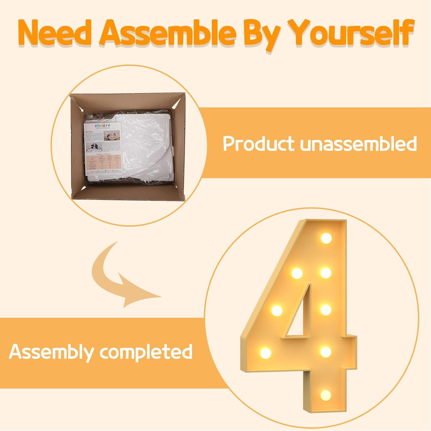 - Assembly Required: Our large marquee numbers is made from foam board and easy to assemble with our splicing mode. Just follow the numbered instructions to align and insert the bottom plate, and reinforce it with a hot glue gun. Then, you're done!