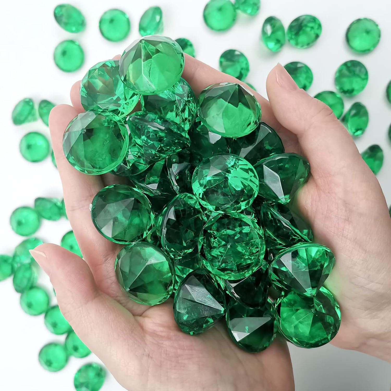 100 pcs Acrylic Diamond Gems, Green Acrylic Diamonds 1 Inch Faux Diamonds Large Acrylic Diamond Vase Filler Fake Diamonds Decor for Party, Event, Wedding, Arts & Crafts, Birthday Decorations