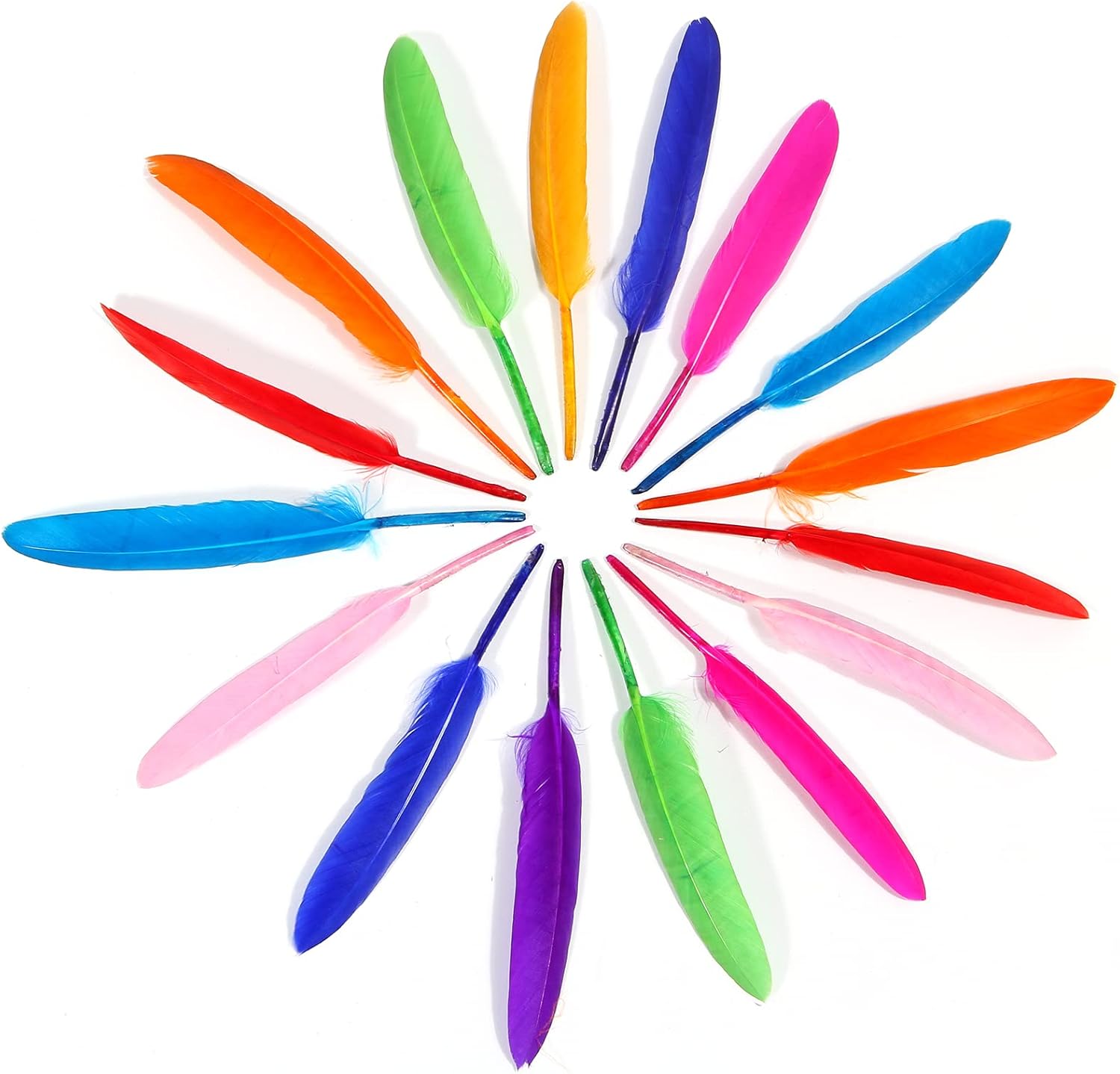 - 🦢Product Specifications:length:4-6inch,10-15cm long.120pcs/bag. Goose Feathers are soft to touch in hand. Because all feathers are purely natural, there may be slight deviations in size, length, and shape.