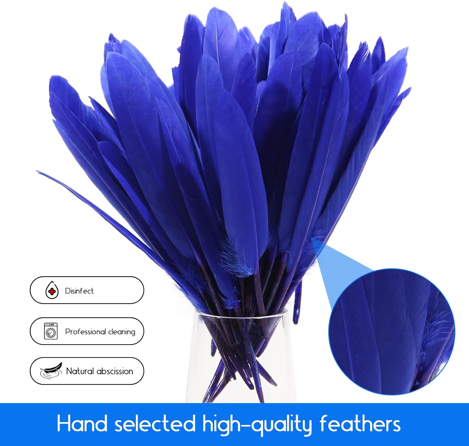 FeelfunFeather 120pcs Blue Goose Cochettes Feather Natural Bulk 4-6 inch 10-15cm for Wedding Party Christmas Decorations DIY Crafts Goose Cochettes Feather