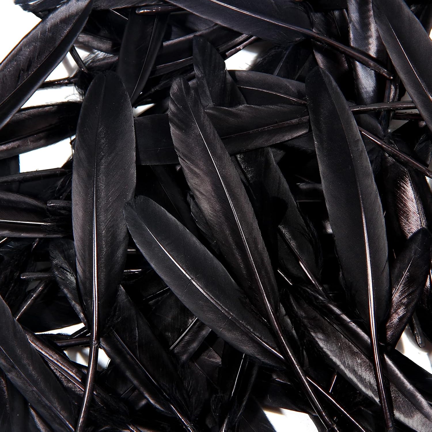 FeelfunFeather 120pcs Black Goose Cochettes Feather Natural Bulk 4-6 inch 10-15cm for Wedding Party Christmas Halloween Decorations DIY Crafts