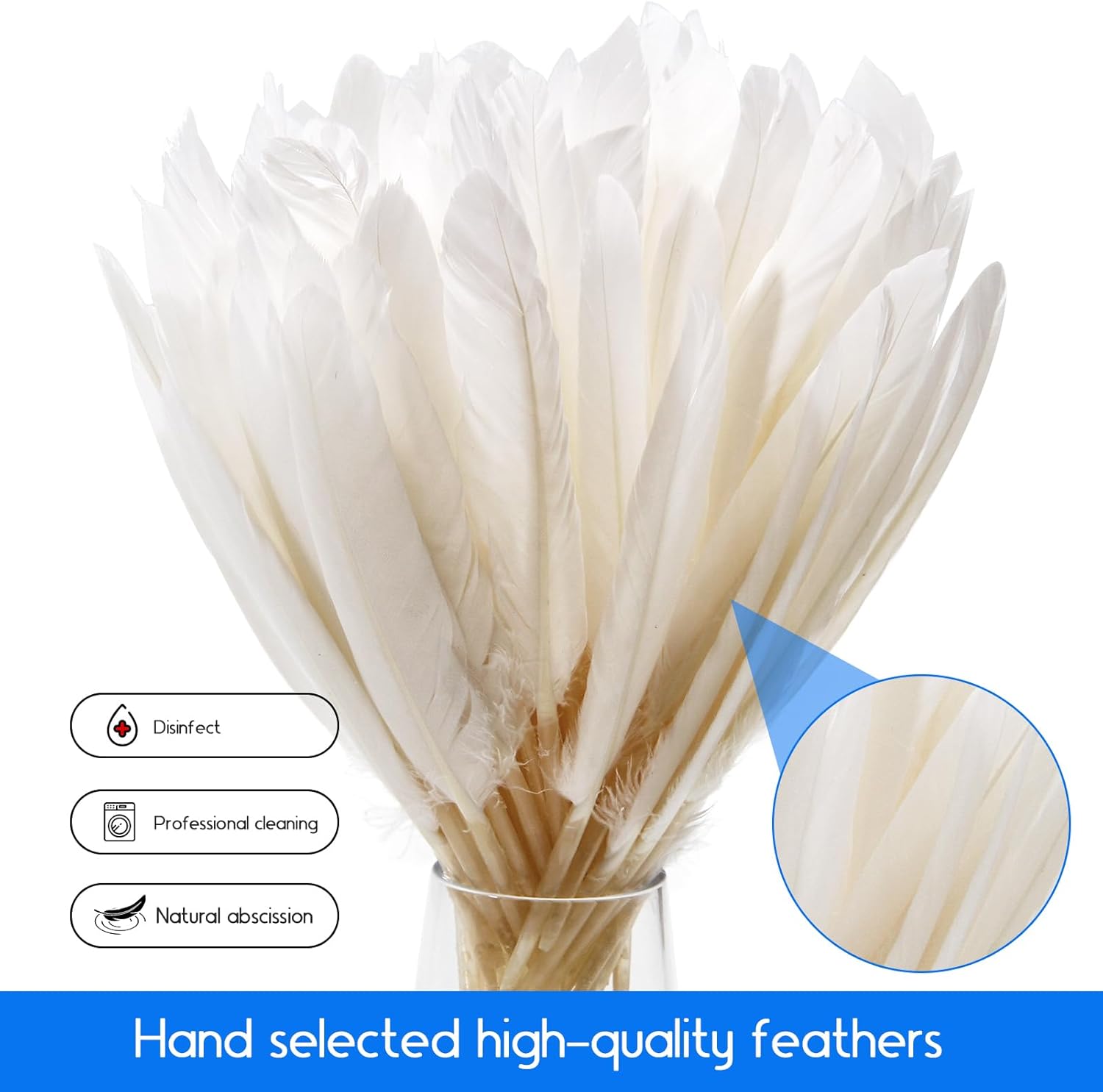 - 🦢Daily care: If there is dust on the feathers, simply move the feathers to remove the dust. It mustn't be washed with water. You can store the feathers in a cardboard box or a paper tube to ensure the feather's ductility.