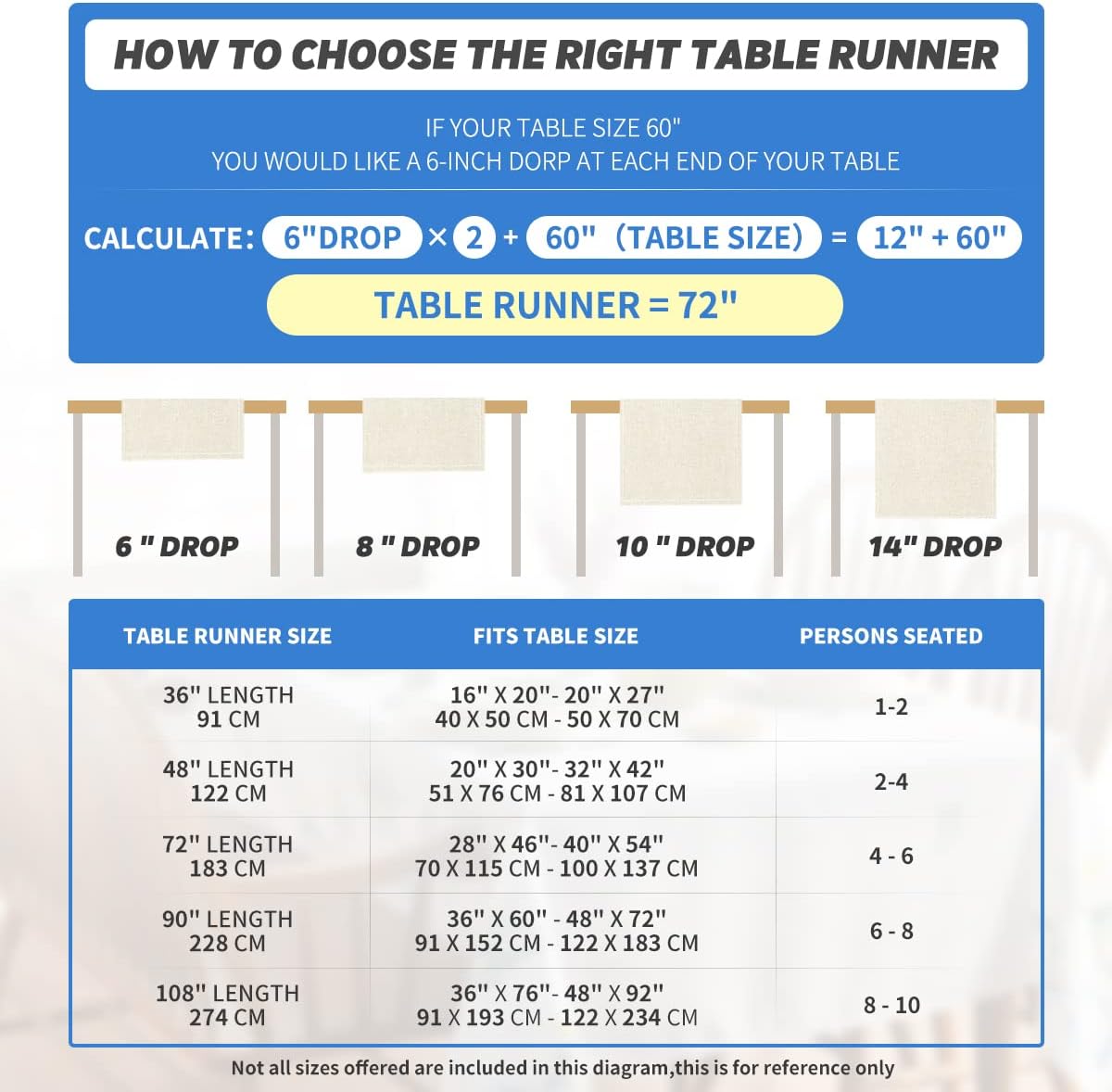 - Fits Table Size : This table runner is 13 x 90 inch, appropriate for a table that can seat 6-8 people, better match your table and give you a delightful dining experience