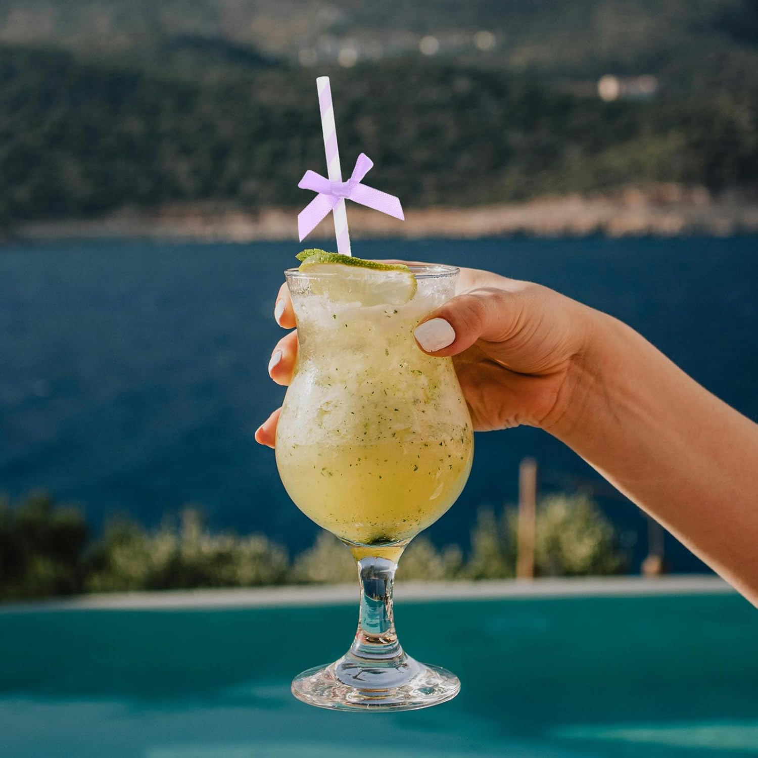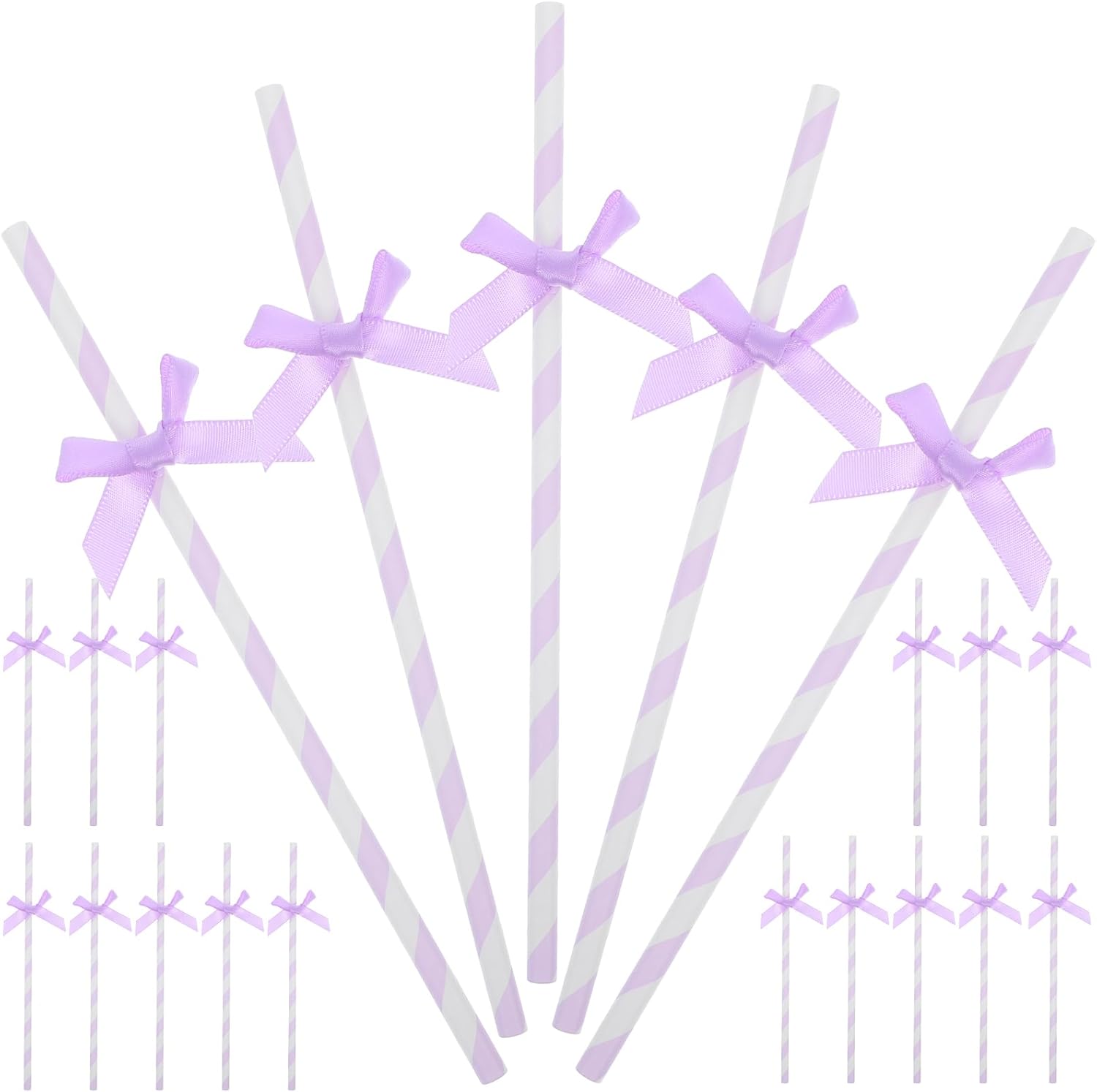 - Charming Design for Aesthetic Appeal: Featuring a lovely purple color with intertwining stripes and chic bow tie decorations, these straws elevate the visual charm of your drinks and impress your guests
