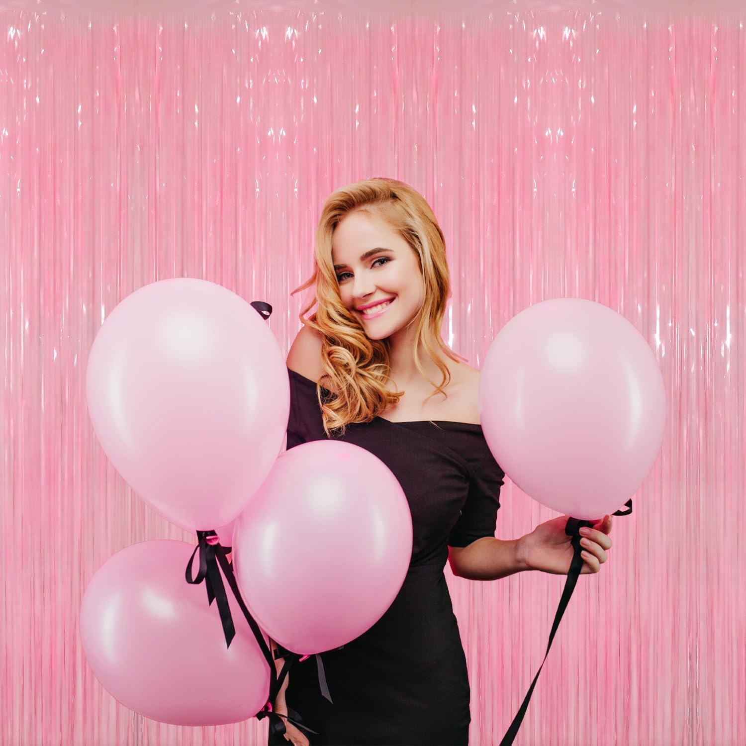 GOER 3.2 ft x 8.2 ft Metallic Tinsel Foil Fringe Curtains Party Photo Backdrop Party Streamers for Birthday,Graduation,New Year Eve Decorations Wedding Decor(1 Pack,Candy Pink)