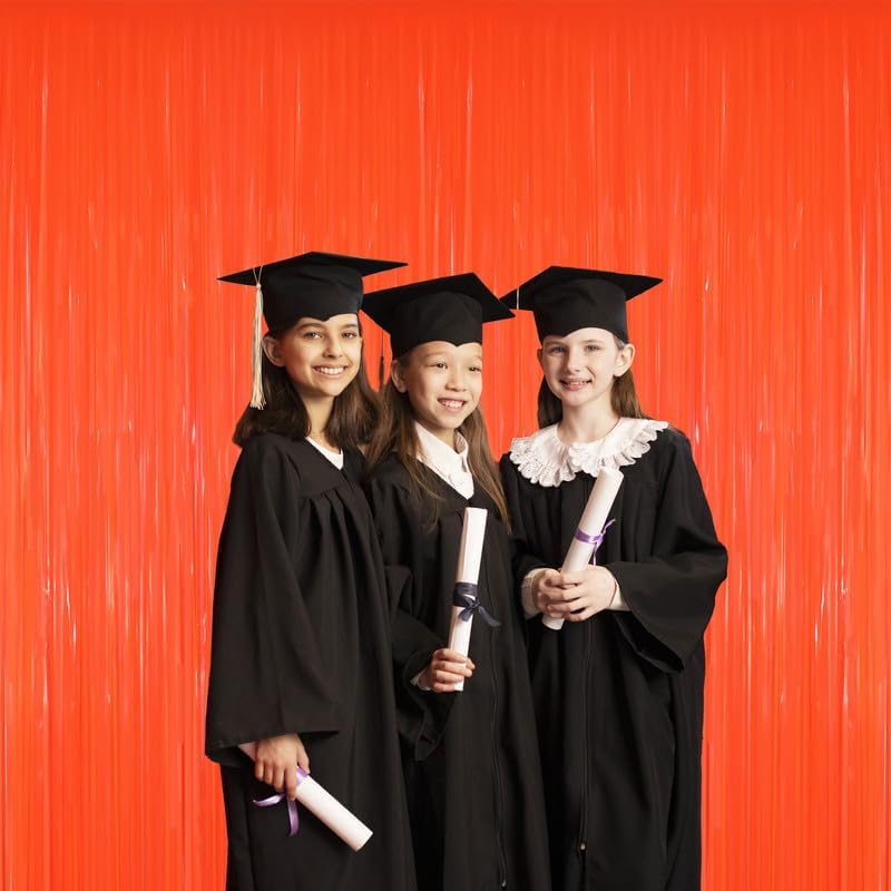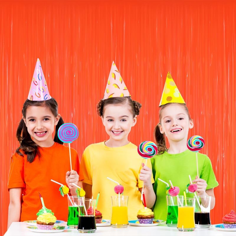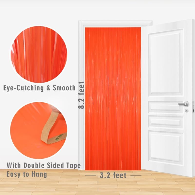 GOER 3.2 ft x 8.2 ft Metallic Tinsel Foil Fringe Curtains Party Photo Backdrop Party Streamers for Birthday,Graduation,New Year Eve Decorations Wedding Decor(5 Packs,Candy Tangerine)