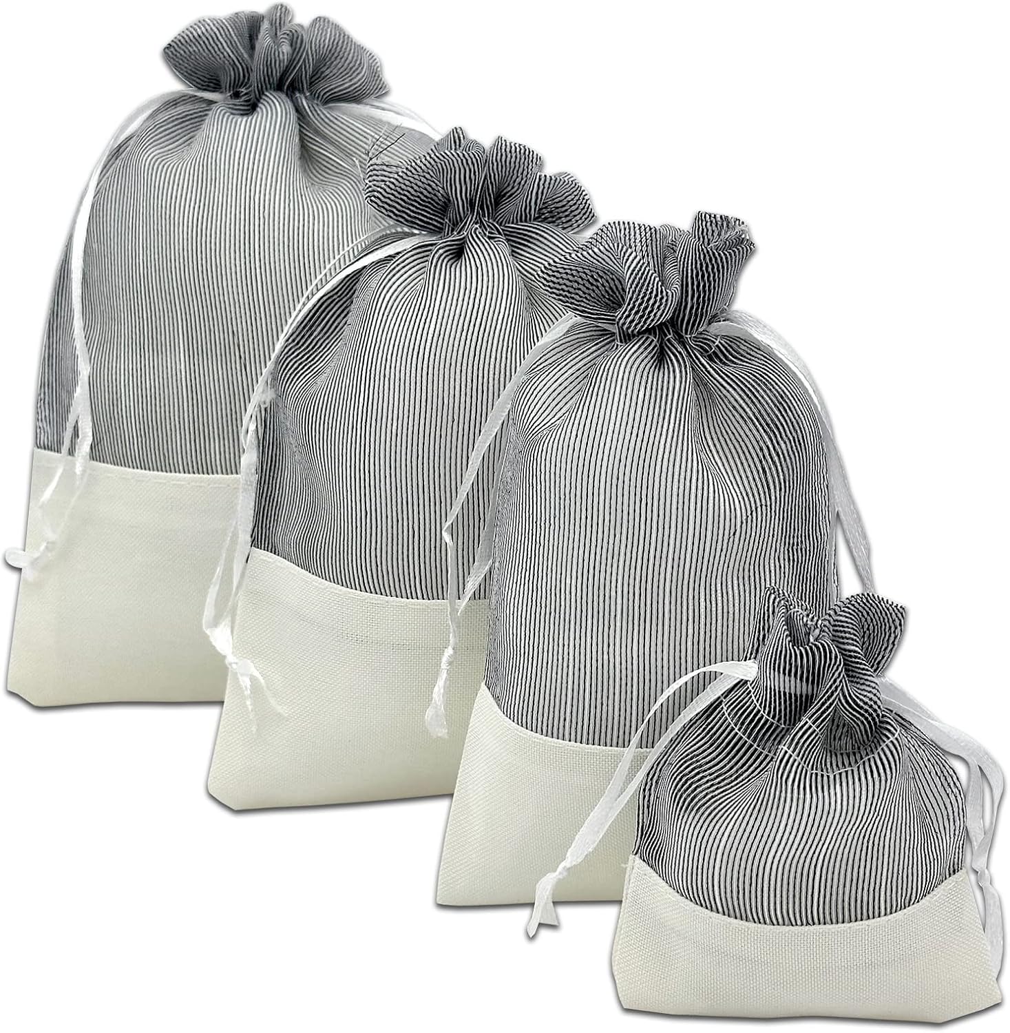TheDisplayGuys For Your Modern Living 24-Pack Linen & Black Organza Gift Bags with Drawstrings (Large 5 1/2 x 8) - Party Favors, Samples, Treats Mesh Pouches