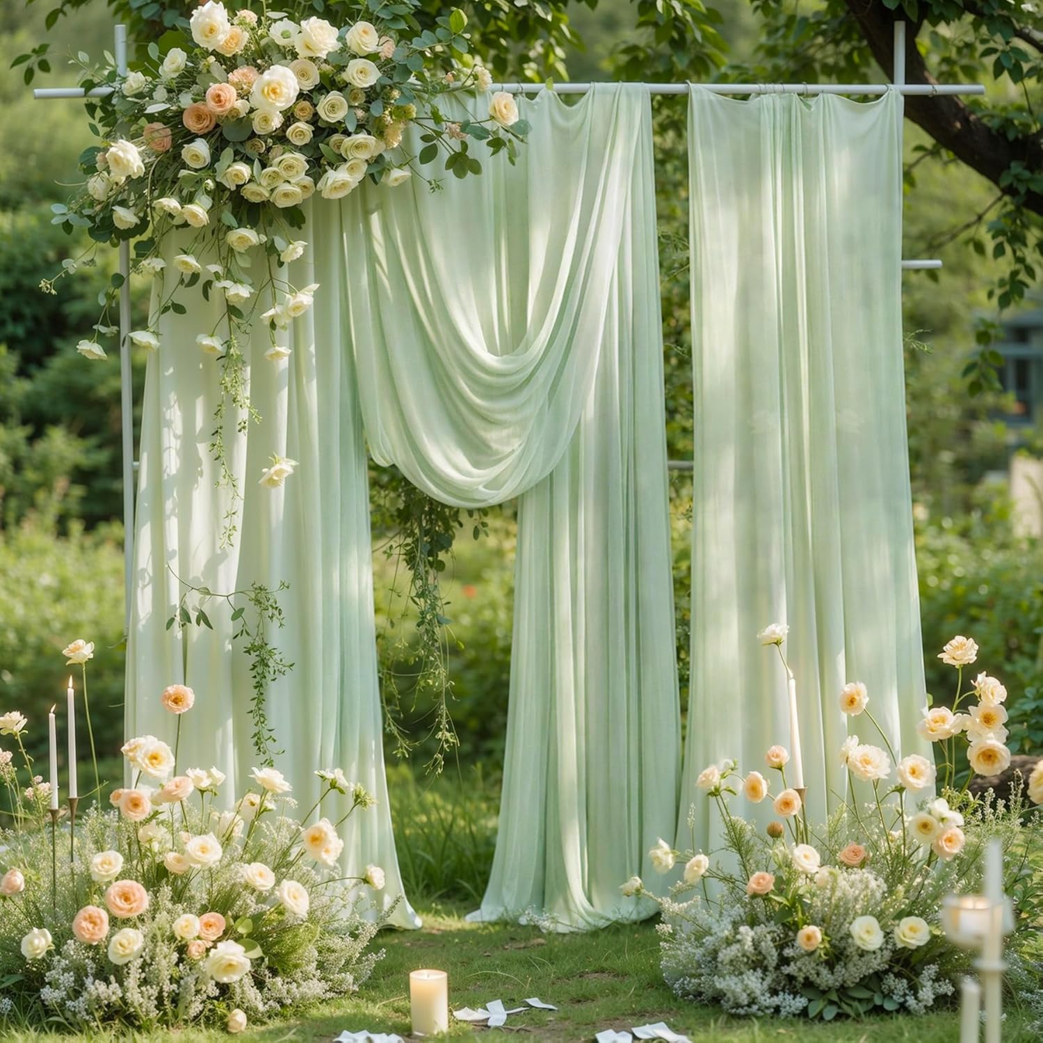Wedding Arch Draping Fabric,1 Panel 18FT Sage Green Arch Backdrop Drapes Chiffon Fabric Drapes Arbor Drapery for Wedding Ceremony Reception Swag Decorations