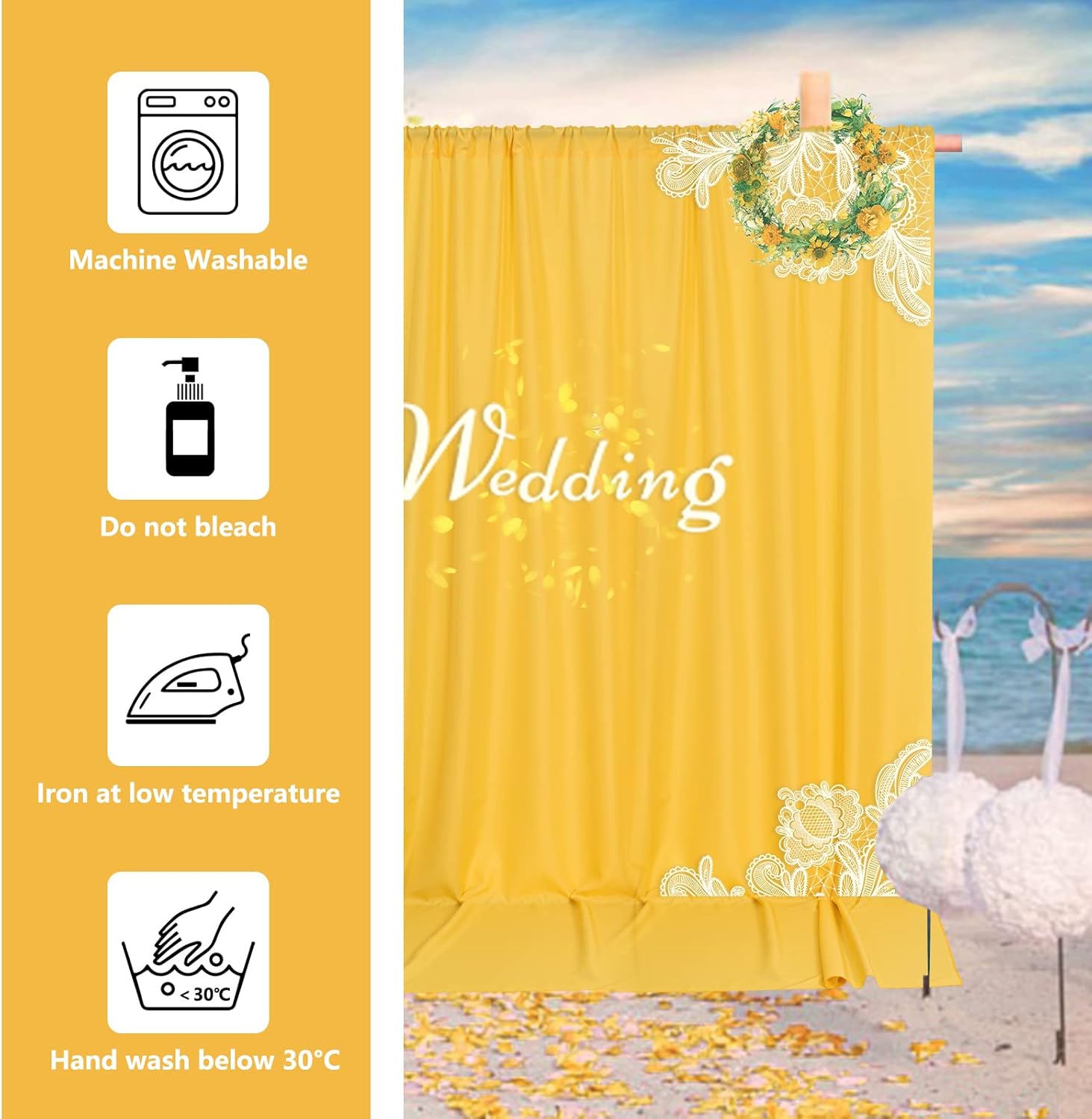 - Easy Care: These backdrop curtains are machine washable, delicate cycle with mild detergent, tumble dry. Do not bleach. Wrinkles caused by packaging disappear after hanging for weeks or wash with cold water