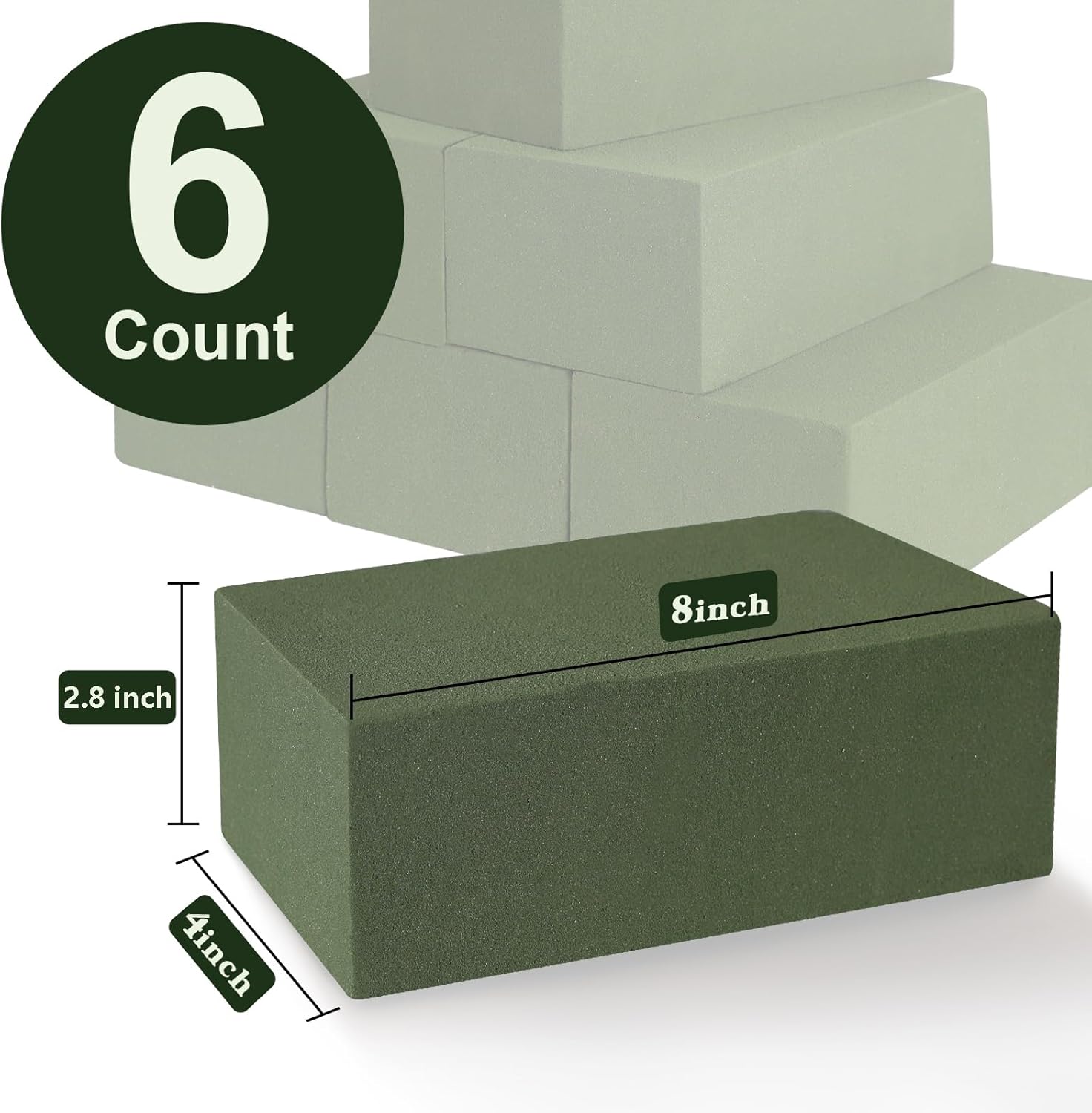- Package and Size: Include 6-pack green dry floral foam bricks, 8" L x 4" W x 2.8" H each. Lightweight and can be cut into any shape to meet your different needs.