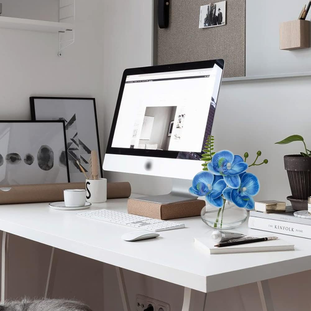 Blue Orchids Artificial Flowers Faux Orchids Arrangement in Clear Glass Vases Set of 3 Real Touch Phalaenopsis Orchid Flowers Small Fake Orchid Centerpiece for Dining Room Table