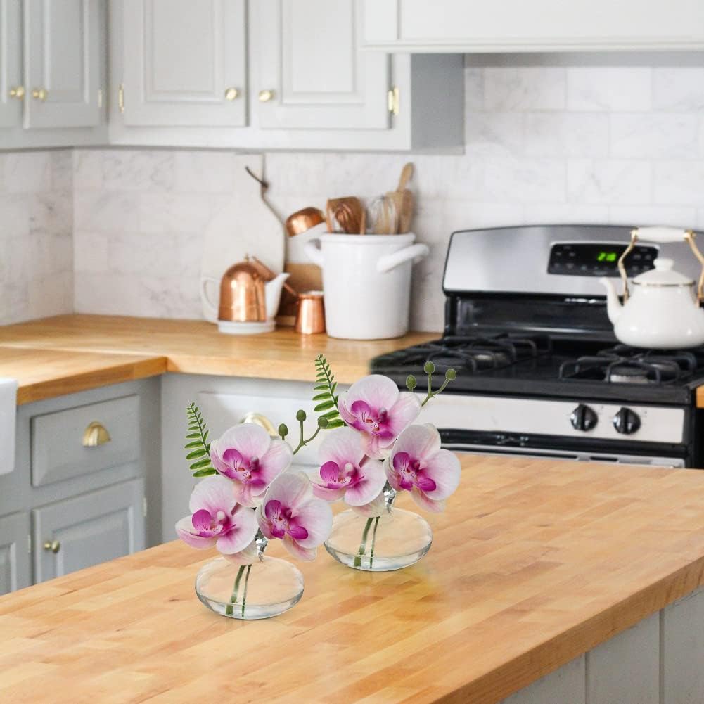Pink Orchids Artificial Flowers Faux Orchids Arrangement in Clear Glass Vases Set of 3 Real Touch Phalaenopsis Orchid Flowers Small Fake Orchid Centerpiece for Dining Room Table