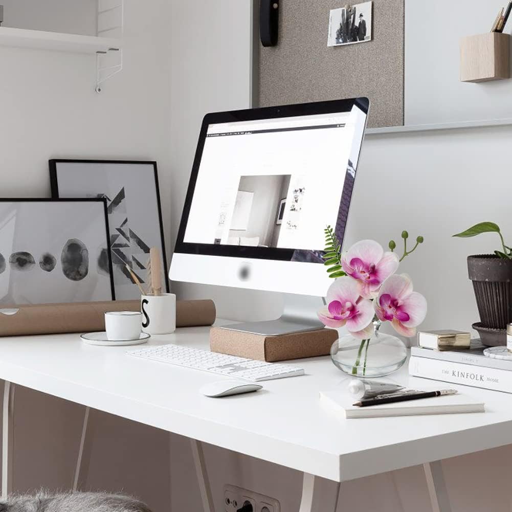 - 【Perfect Size】: Overall height of the faux orchids in pots is 6.3",and the flower pot size is 3.5"(D)x2.4"(H), the mini orchid, buds,branches, fern leaf of the orchid centerpieces for tables can be bent and reshaped to a certain extent, its small size can place on any corners