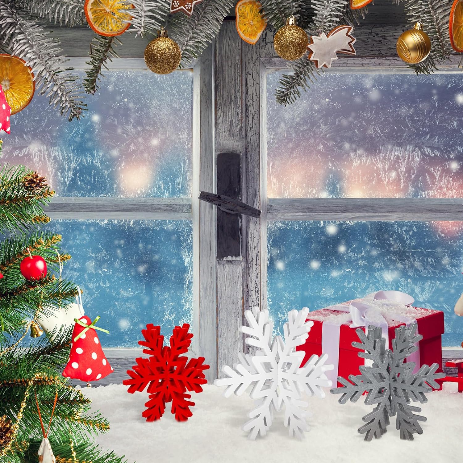 - Widely Applicable: the 3D wooden snowflake decorations Christmas can be placed on tables, windows, walls, cabinets, mantel shelves, fireplaces, bookshelves, stairs or some outdoor places; They are good supplies for Christmas parties, winter theme parties, birthdays, celebrations, anniversaries, family reunion parties and more