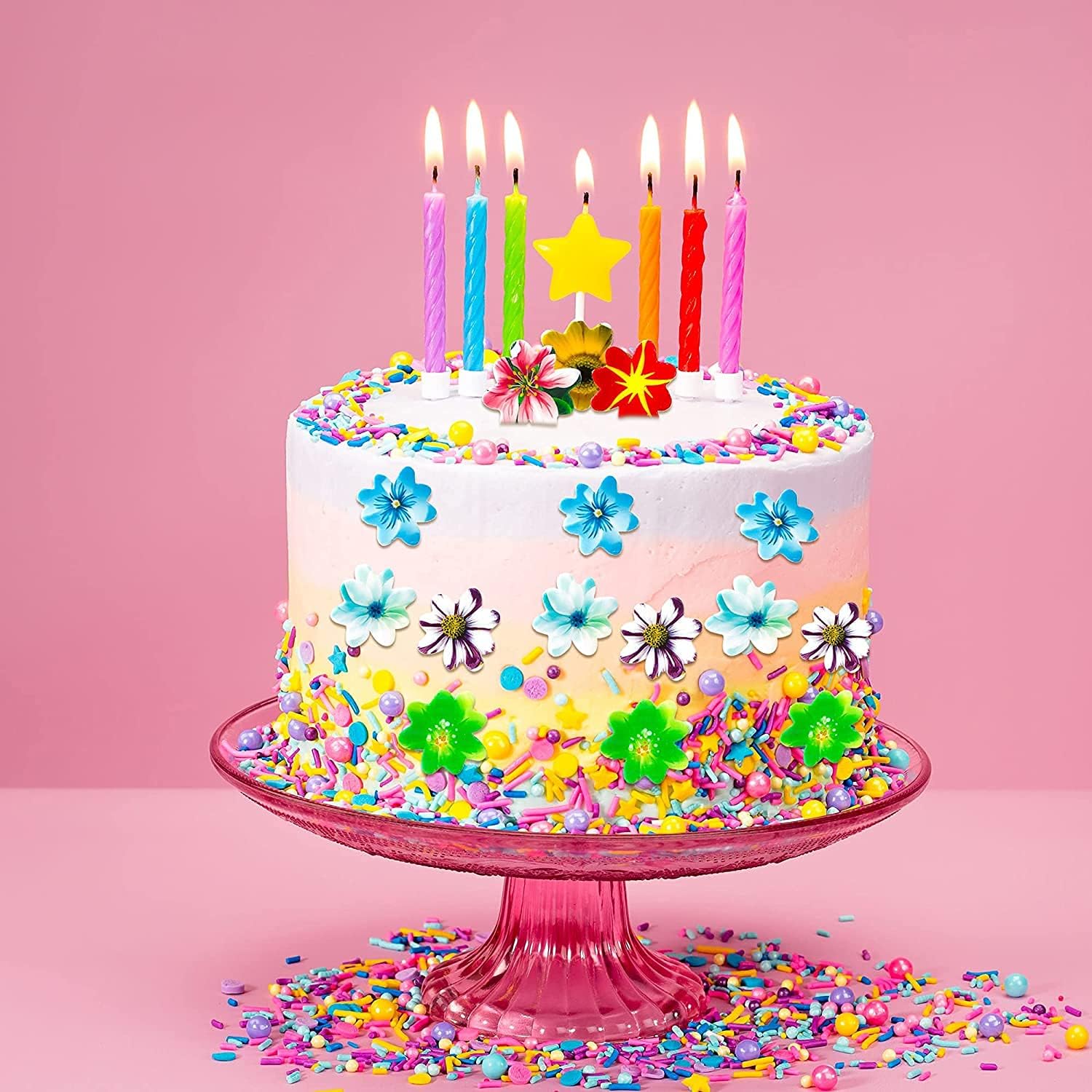 Edible Flowers 120pcs Wafer Paper Cake Cupcake Toppers for Decorating Rice Paper Flower Food Decorations for Baking Girl Birthday Party Mix Size Color (Flowers)