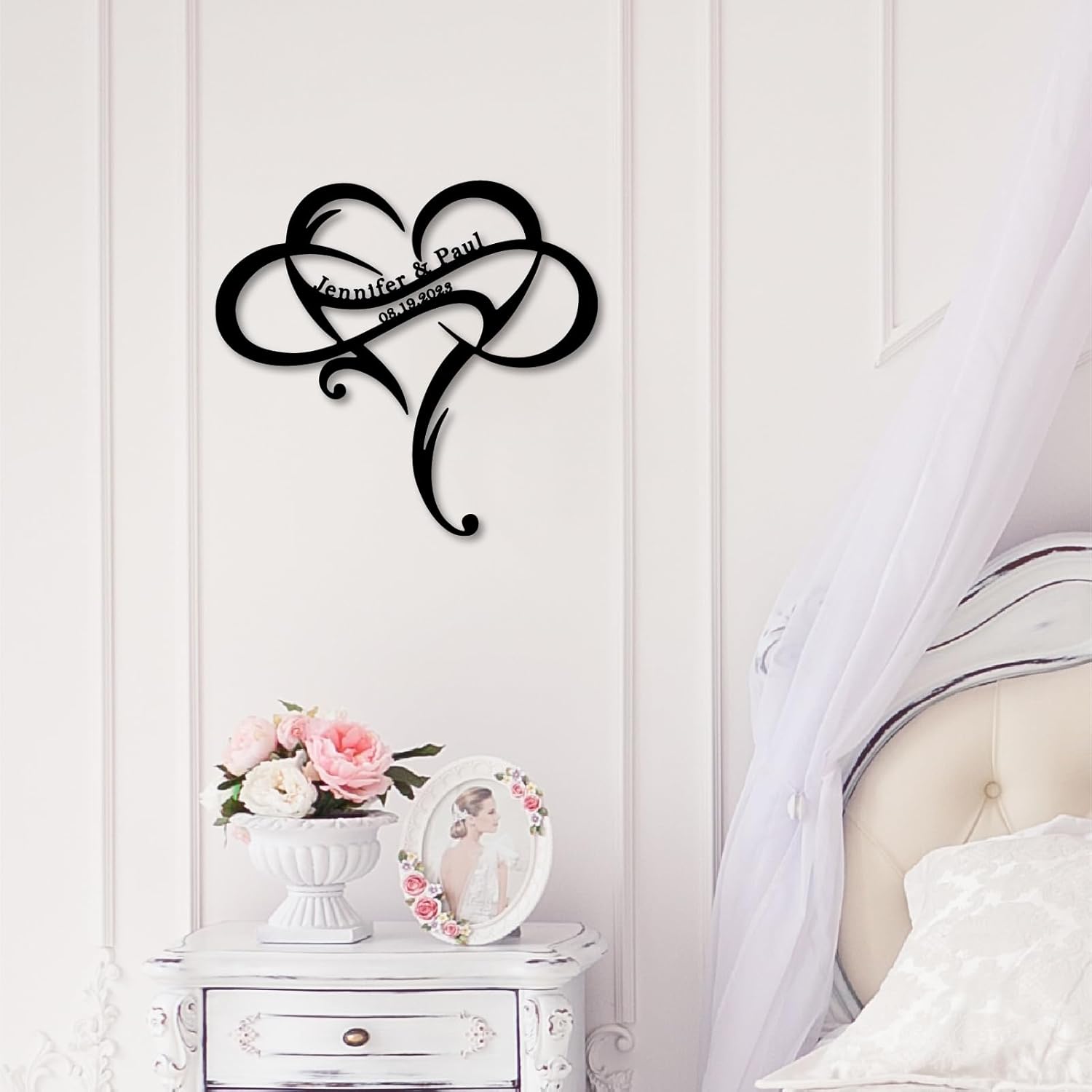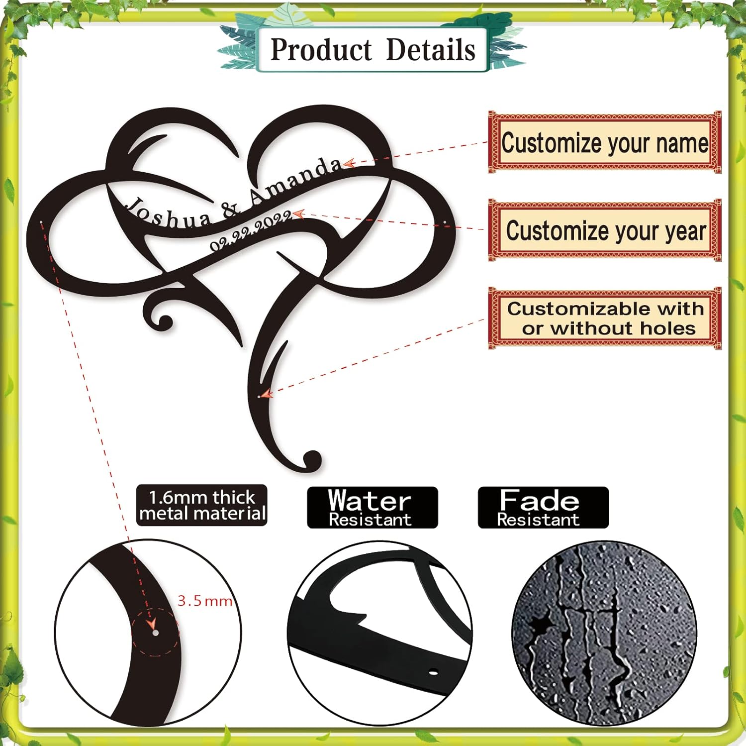- Personalized Heart Design: Celebrate love with a customizable metal sign featuring intertwined names and a heart-shaped motif, perfect for showcasing special relationships.