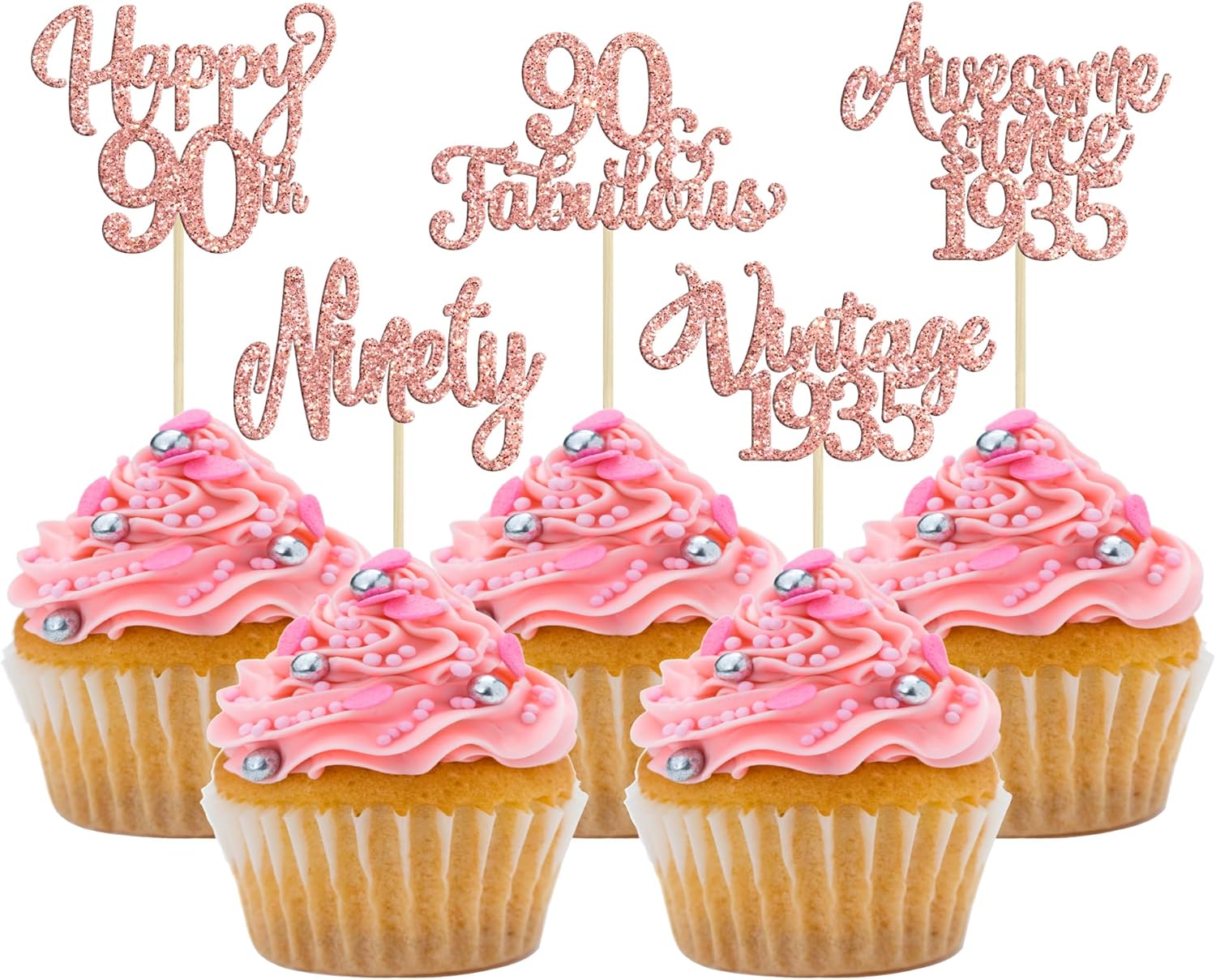 30Pcs Vintage 1935 Cupcake Toppers Glitter Ninety 90 Fabulous Happy 90th Birthday Cupcake Picks Awesome Since 1935 Cake Decorations for 90th Birthday Anniversary Retirement Party Supplies Rose Gold