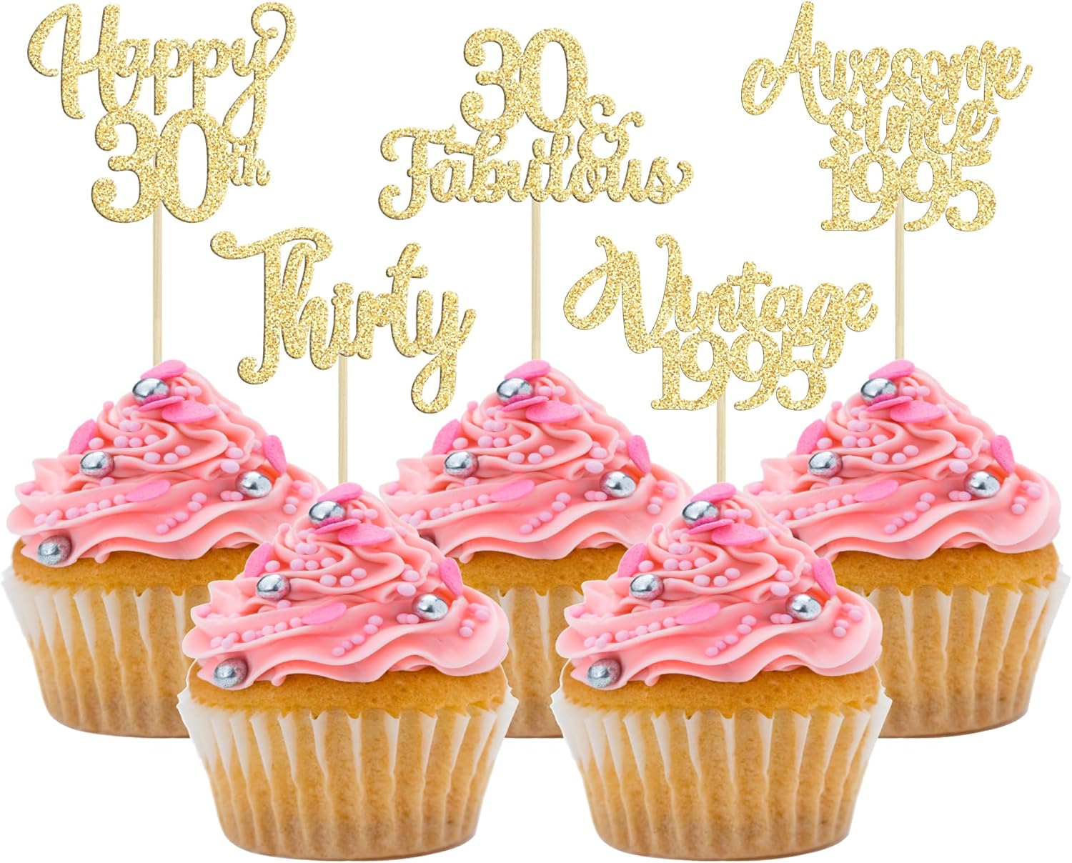30Pcs Vintage 1995 Cupcake Toppers Glitter Thirty Happy 30th Birthday 30 Fabulous Cupcake Picks Cheers to 30 Years for 30th Birthday Wedding Anniversary Party Cake Decorations Supplies Gold