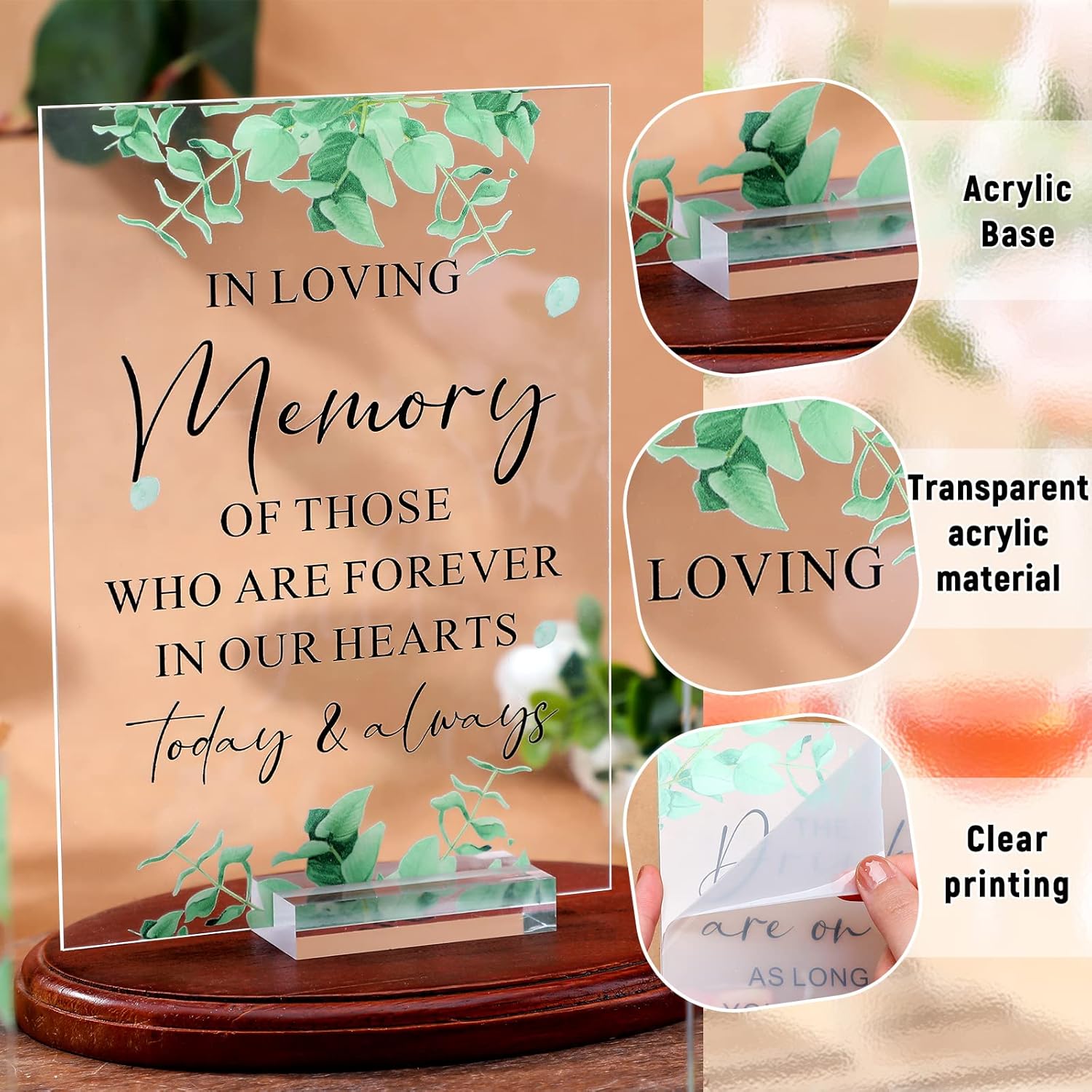 Weysat 6 Pcs Clear Acrylic Wedding Signs for Reception and Ceremony 5'' x 7'' Wedding Signage with Stand in Loving Memory Table Decorations Cards and Gifts Guestbook Reserved Table Sign(Elegant Style)