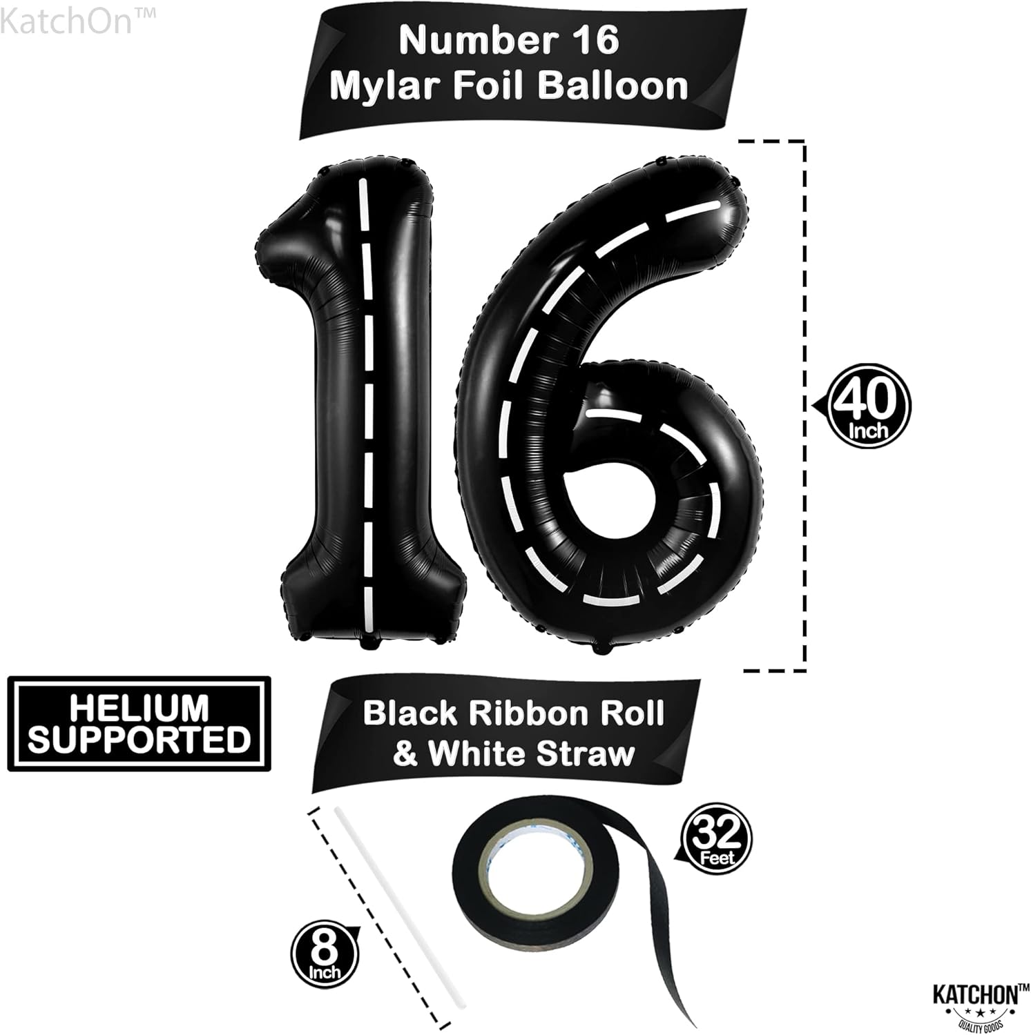 - LARGE SIZE - 40 INCH | BEAUTIFUL ROAD THEME NUMBER BALLOONS - This Black 16 Balloon number 40 inch is the party complement you shouldn’t miss. Add a great impact to your decoration with this gaint sweet 16 balloons Car Mylar Foil comes with, 1 Black Ribbon and 1 Straw to Inflate balloons. Pair this sweet 16 balloons number with other balloons to create Wonderful Decor yo your birthday, New Driver Party Decorations or anniversary decorations.